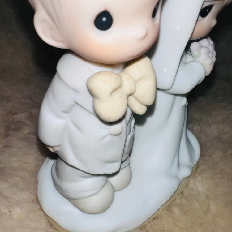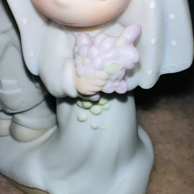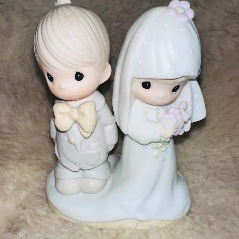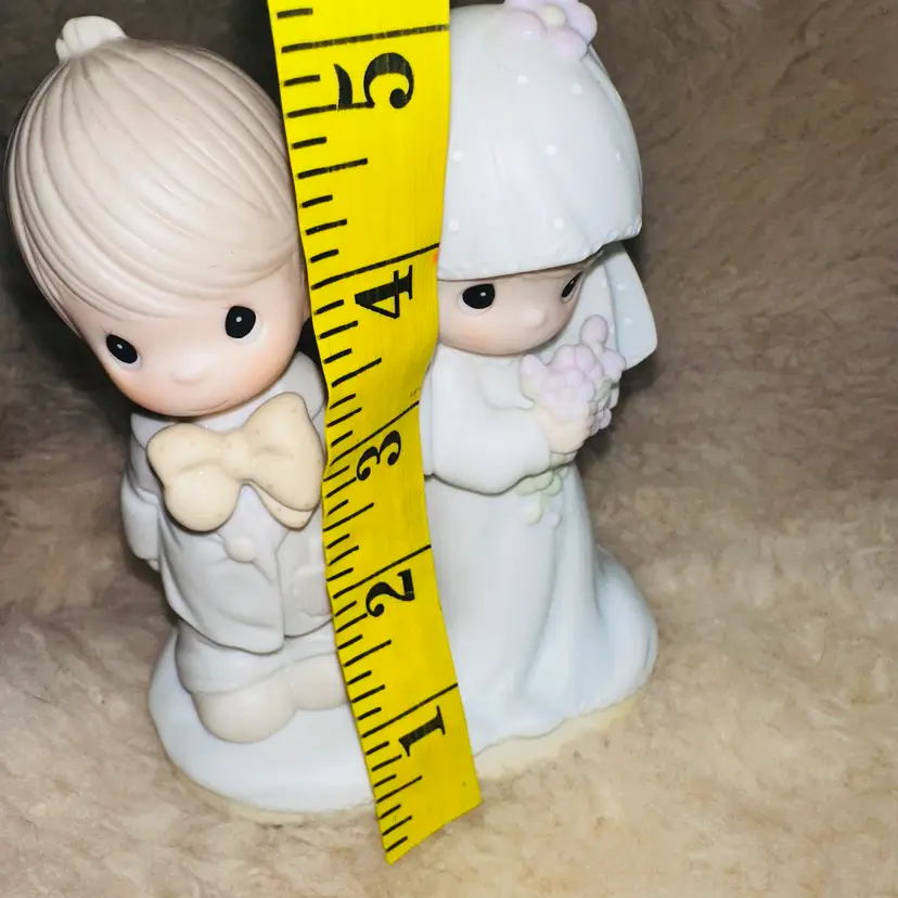 Vintage 1979 Precious Moments Lord Bless & Keep You Bride & Groom Figurine E-3114. Pre-Owned Excellent Condition. Precious Moments figurine, model E-3114, depicting a bride and groom. The figurine is made of porcelain and measures approximately 5 inches tall. The base is inscribed with "The Lord Bless You and Keep You". Made in China. Smoke Free Home. #preciousmoments #wedding #caketopper #1979 #bridalshower #weddinggift