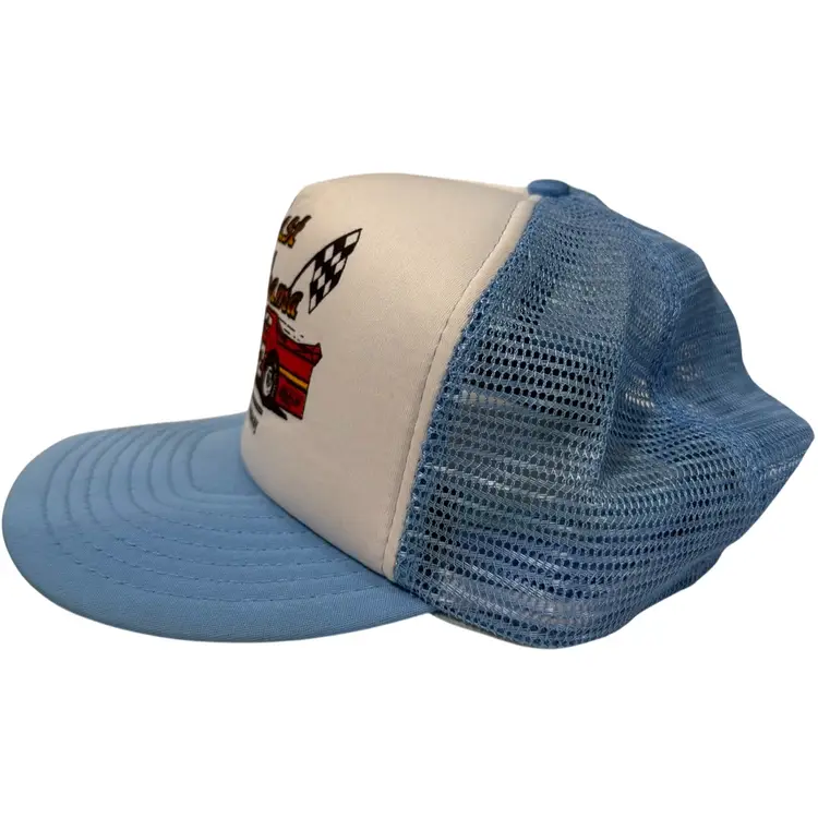 The Vintage 1980 East Alabama Motor Speedway Flat Brim Trucker Style Snapback is a stylish and nostalgic accessory suitable for various occasions. Made from a blend of polyester, nylon, and cotton, this hat features a solid blue and white color scheme with a canvas fabric type. The snapback design and adjustable fit make it comfortable for both men and women to wear, while the racing theme and 80s vibe add a touch of retro flair. Perfect for those who appreciate classic car culture and vintage aesthetics.