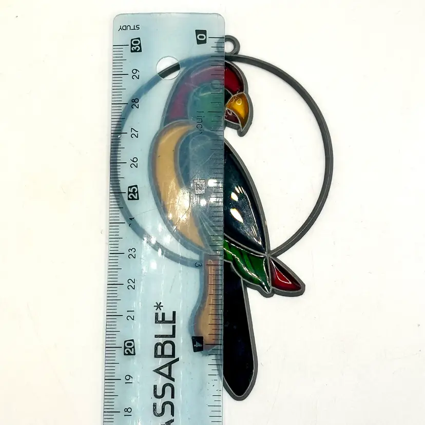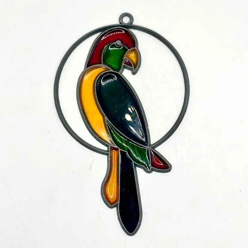 Vintage 1980/90’s Parrot Stained Glass Suncatcher 4.5”