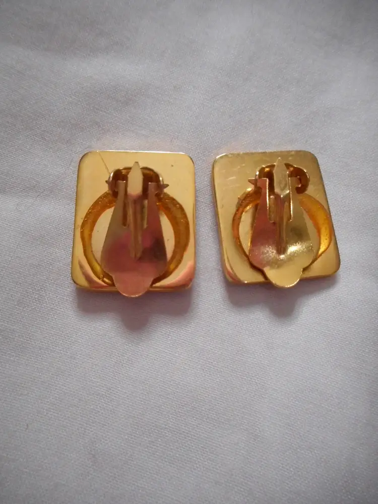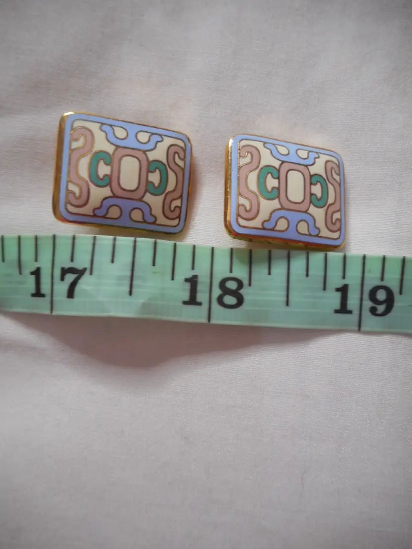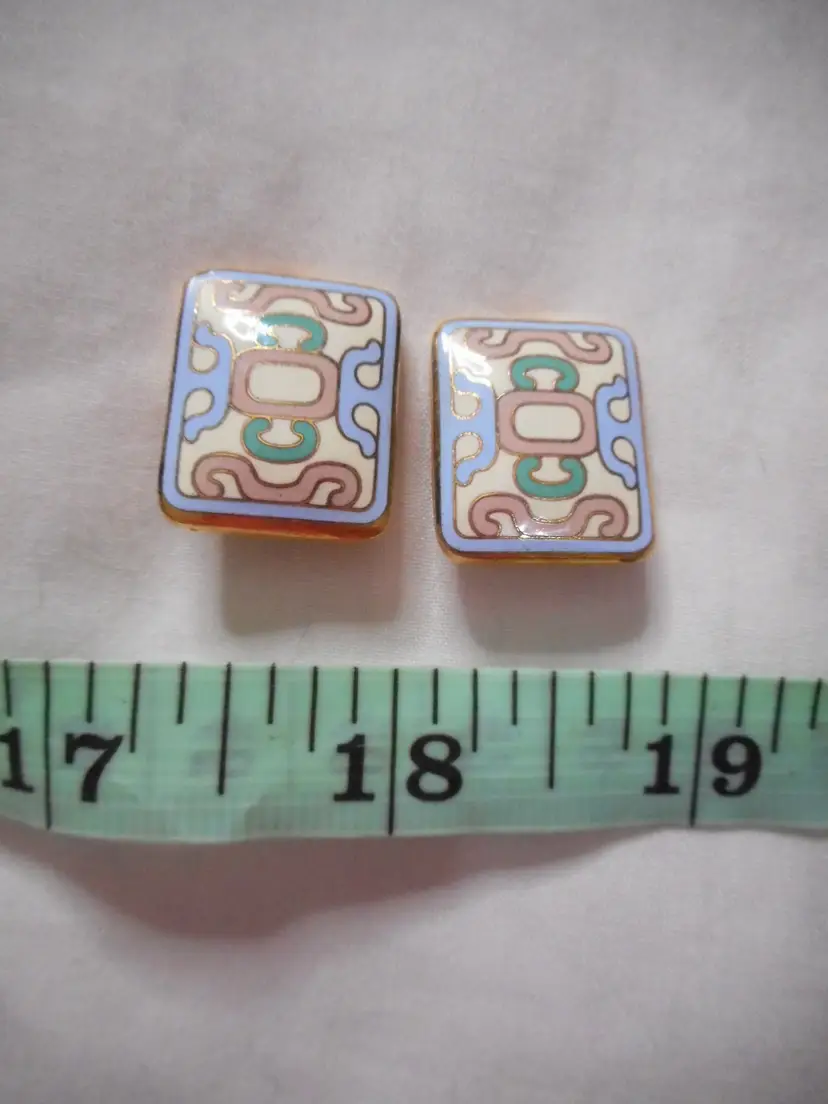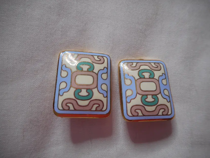 gold back with blue beige green pattern on white - reminds me of an aztec pattern