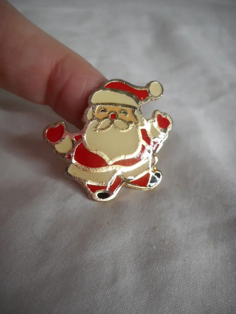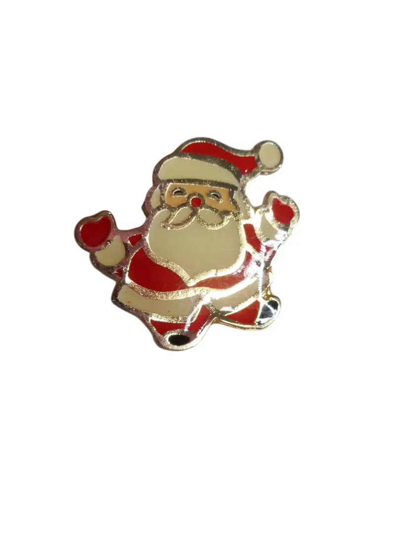 Vintage 1980s Enamel Santa Gold-Tone Enamel Lapel Brooch Pin