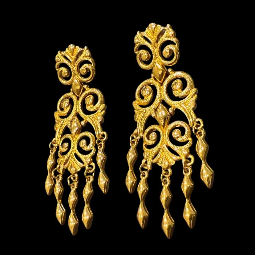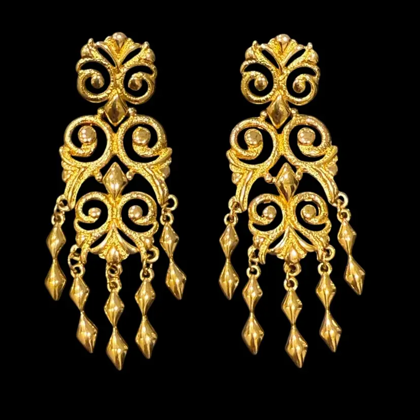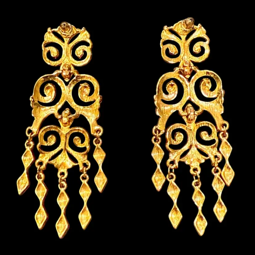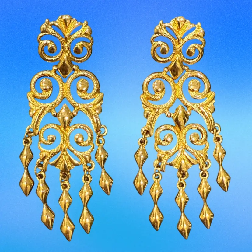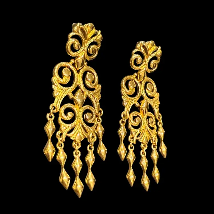 Vintage 1980’s Monet GoldTone Chandelier Dangle Earrings, 3”