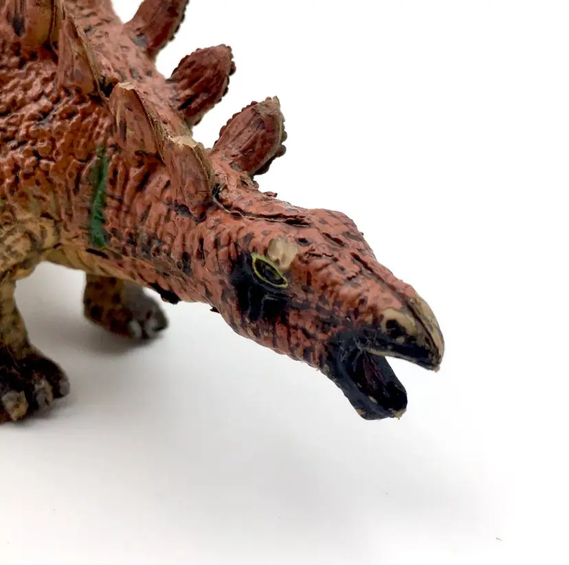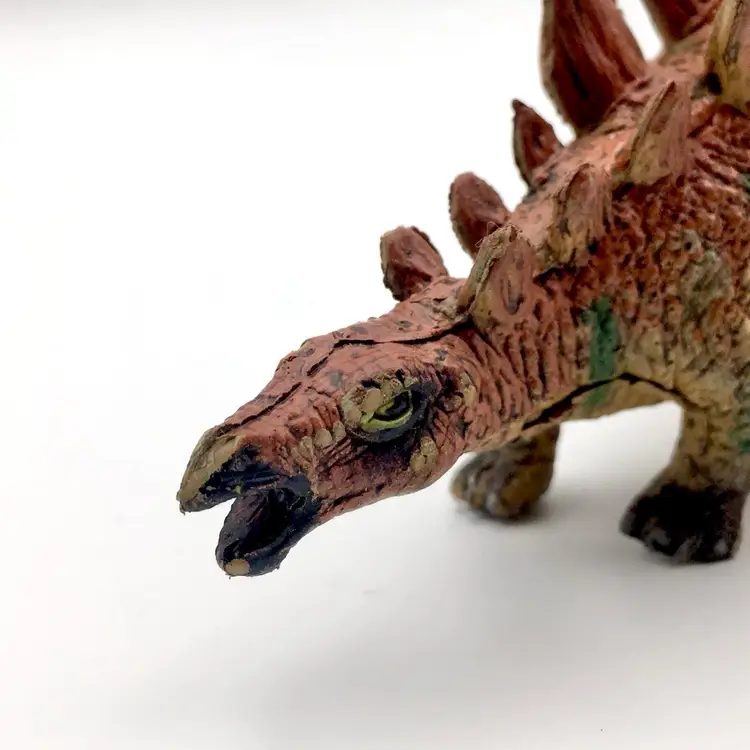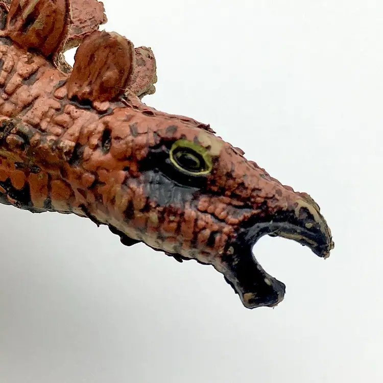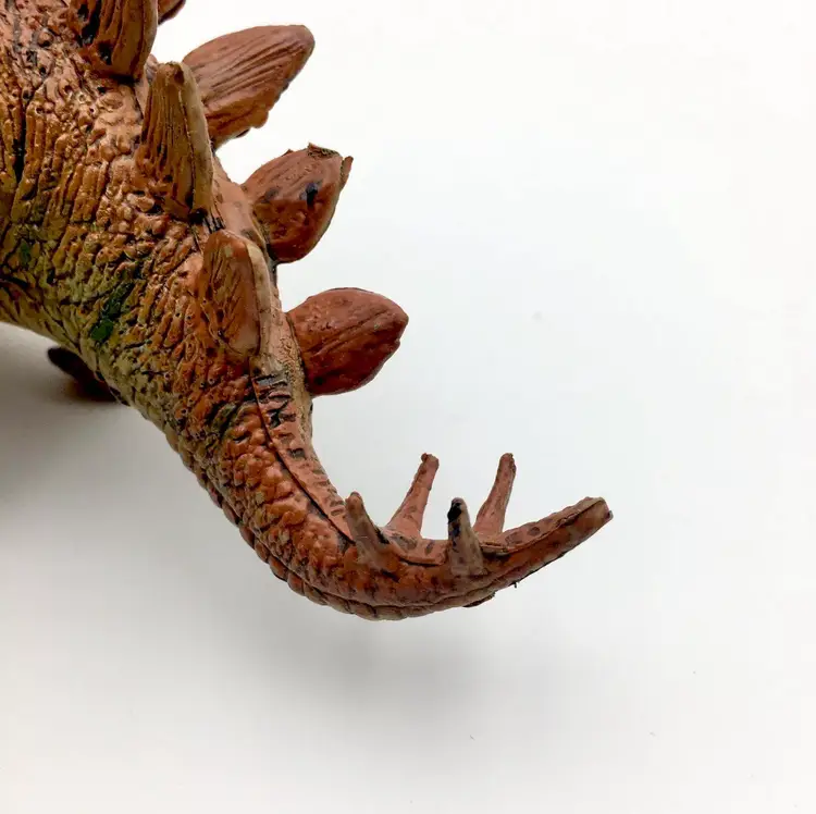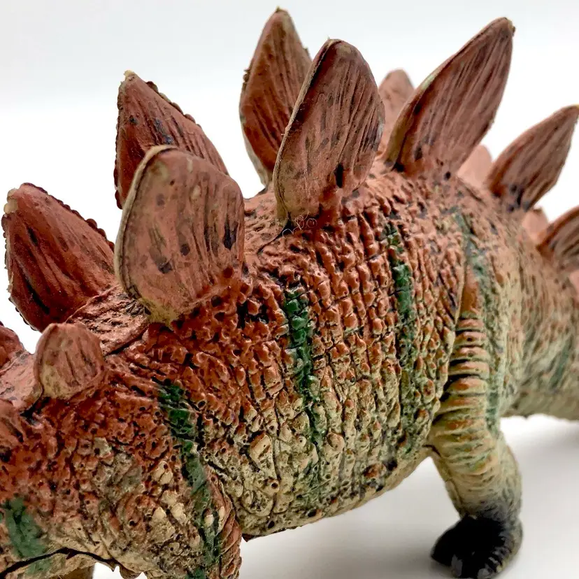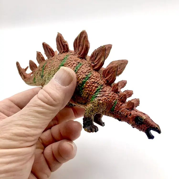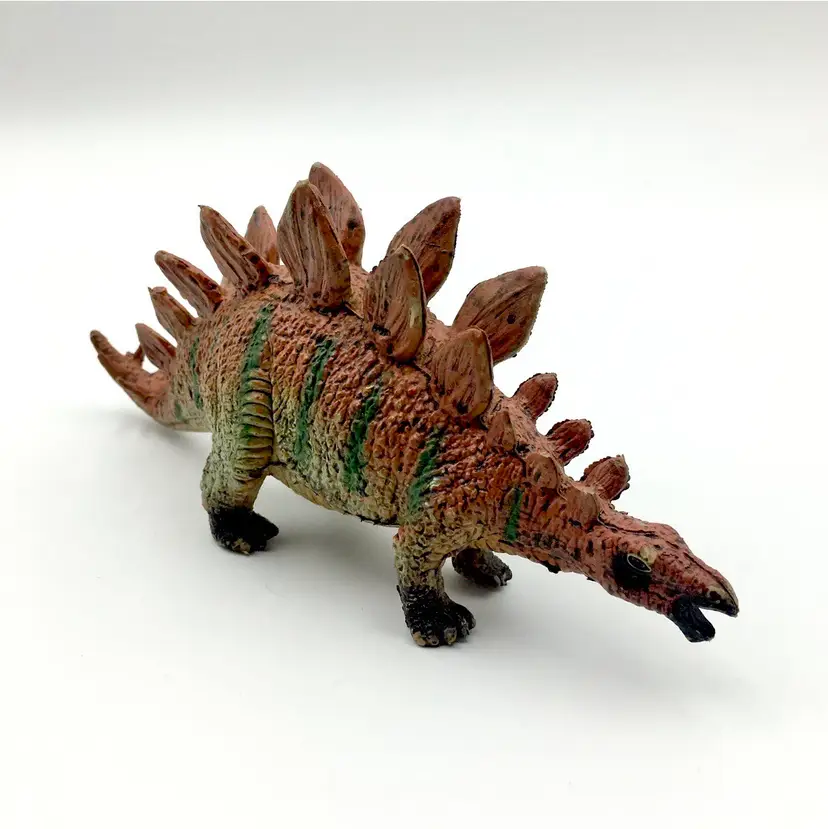 Vintage Stegosaurus dinosaur rubber toy figurine made by AAA Toys in China. Estimate this dates to 1980s. Stamped on bottom with the AAA company logo and CE (China Enterprises). Item is complete and with only minor wear to the original paint as shown. Displays Well!! Measures about 7.5” long. See pics for more details.