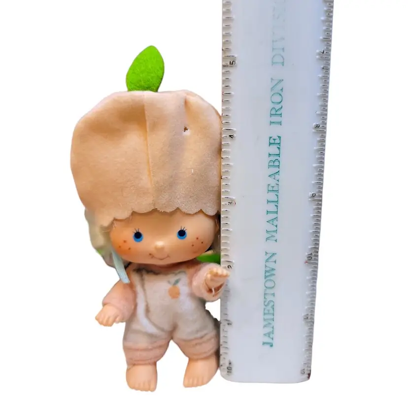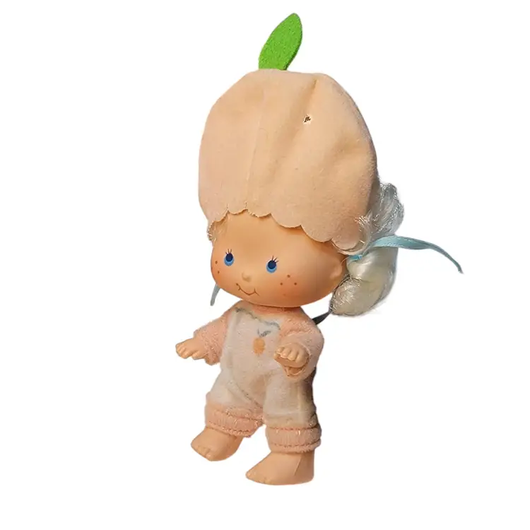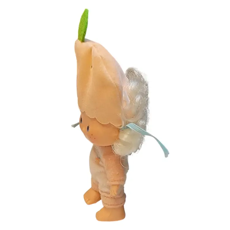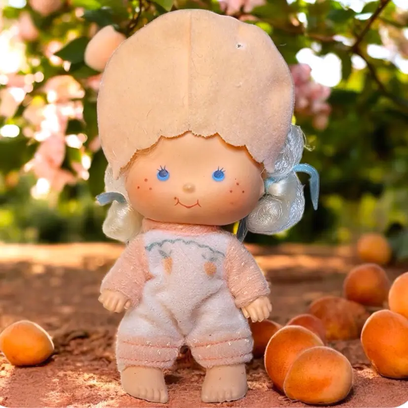 The 1980 Kenner re-issued the five original dolls, now with curved hands (except the babies), and added four more characters. The dolls included six 5.5” dolls without pets, plus two 3” baby dolls and one villain with pets. They were scented like their name. The four new characters were called: ~Apricot with Hopsalot Bunny ~Lemon Meringue ~Orange Blossom ~Raspberry Tart