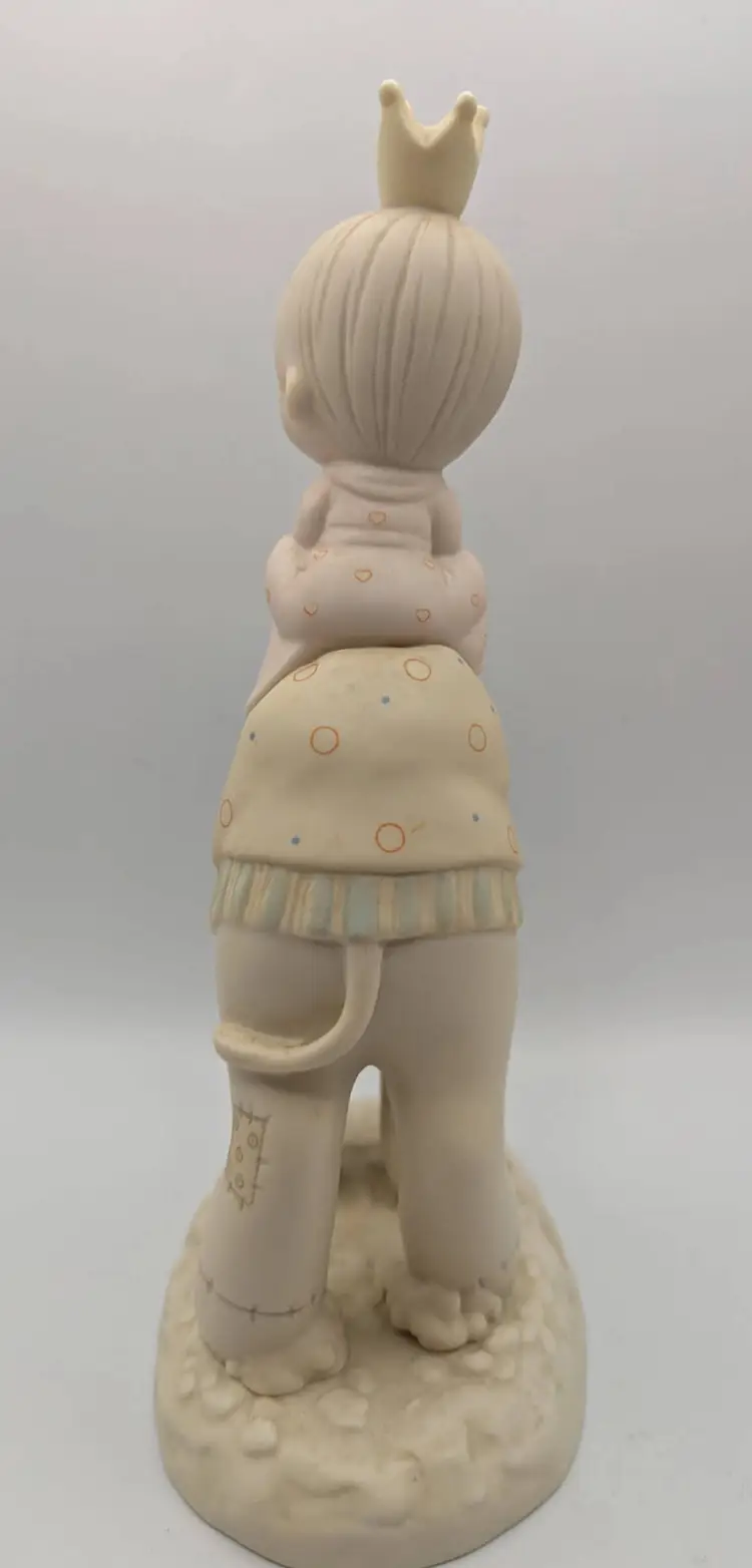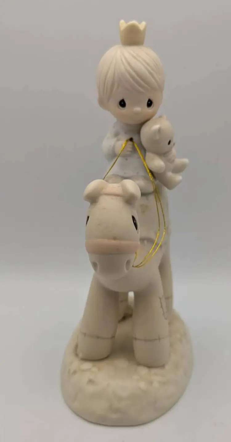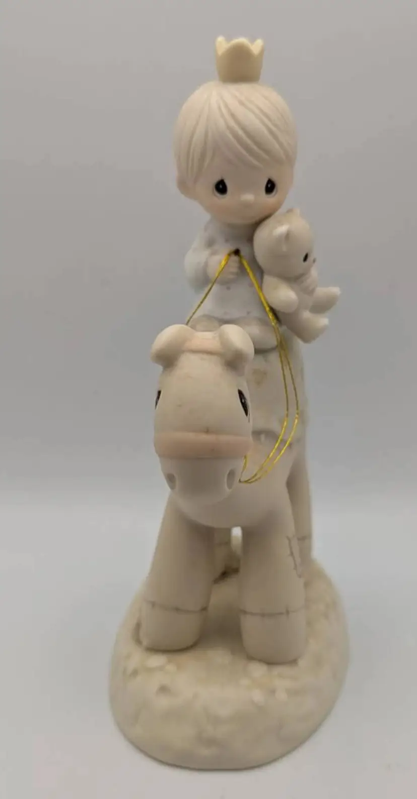 This is the set of 1981 Precious Moments Wisemen on Camels. Titled" They followed The Star" It is a Jonathan and David art piece for Enesco. E-5624 is the number. Made in Thailand. They have a matte finish. They are the sweetest figurines I have owned. The two tall ones measure 9.5 inches tall, the little one is 7.5 inches tall.