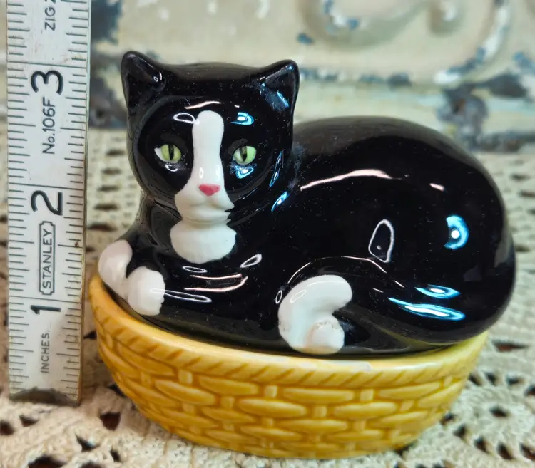This charming trinket dish with lid is in excellent, used condition, with no appreciable chips, scratches or cracks. Measurements are depicted in the pictures of the item or listed in the description of the item. Please review the photos, as they are part of the item description. Photos will always reveal noticeable defects, as will my description. Any white “blemishes” that are not pointed out in this section are from the lighting that I use for my photos. If you need clarification, please reach out to me.