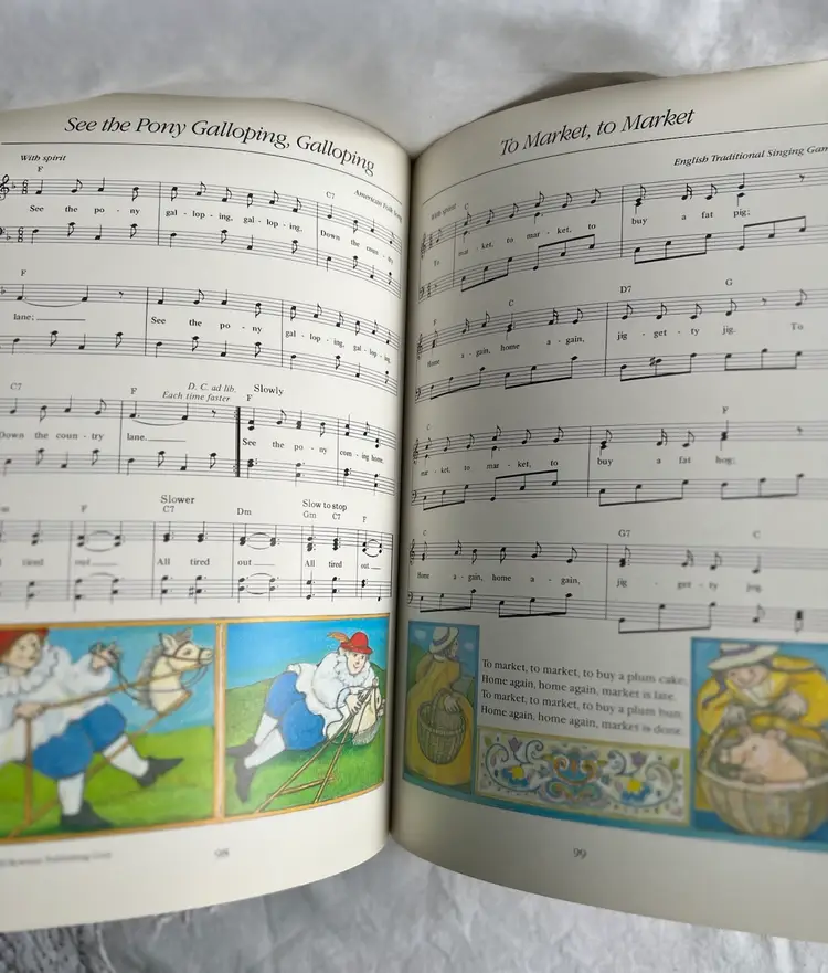 This charming book of music & illustrations is a hardcover with dust jacket & measures ~ 11 x 8” This book is perfect for gifting, collecting or repurposing.