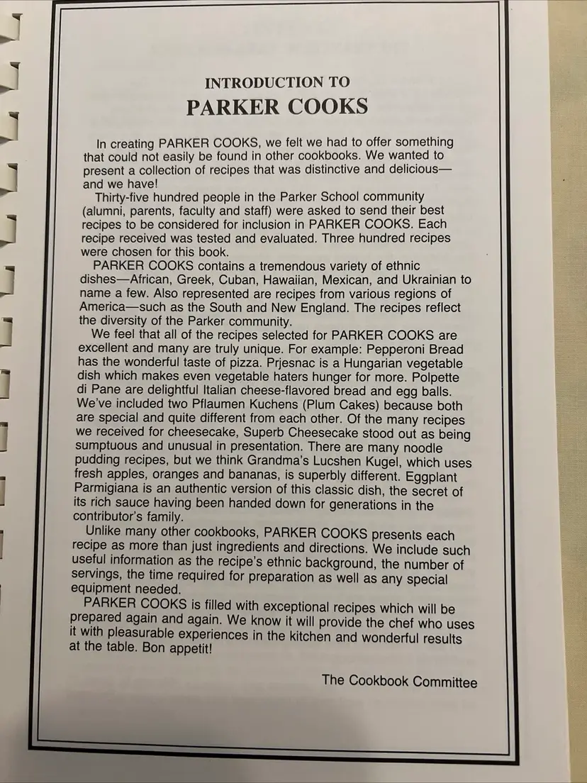 Step into the world of culinary delights with this Vintage 1983 Parker Cooks Recipes Cookbook. This limited edition cookbook features a spiral bound format, making it easy to flip through and find your favorite recipes. The book contains a variety of recipes ranging from breakfast to dinner, and everything in between.