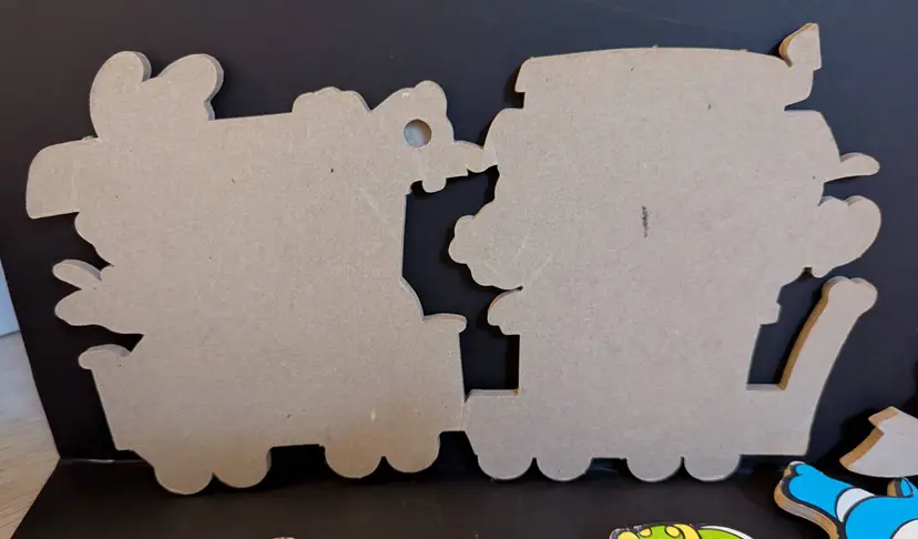 These were hung in child's room. A lover of Disney- Mickey and Friends. They are vintage and do have some age. There are some bent areas- mostly with the connection of the trains and Louie's neck . Does not affect its ability to hang properly. Non smoking home Non pet home.