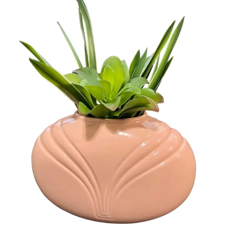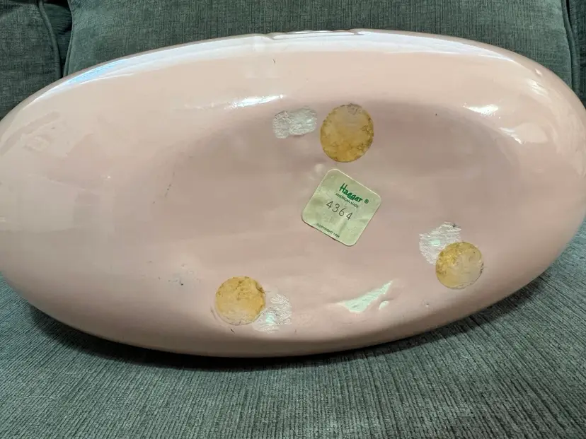 This classic 1984 Royal Haeger ceramic vase still has its originally sticker! In the lovely pink mauve color and art deco style and made by the best of mid century ceramics. #4364