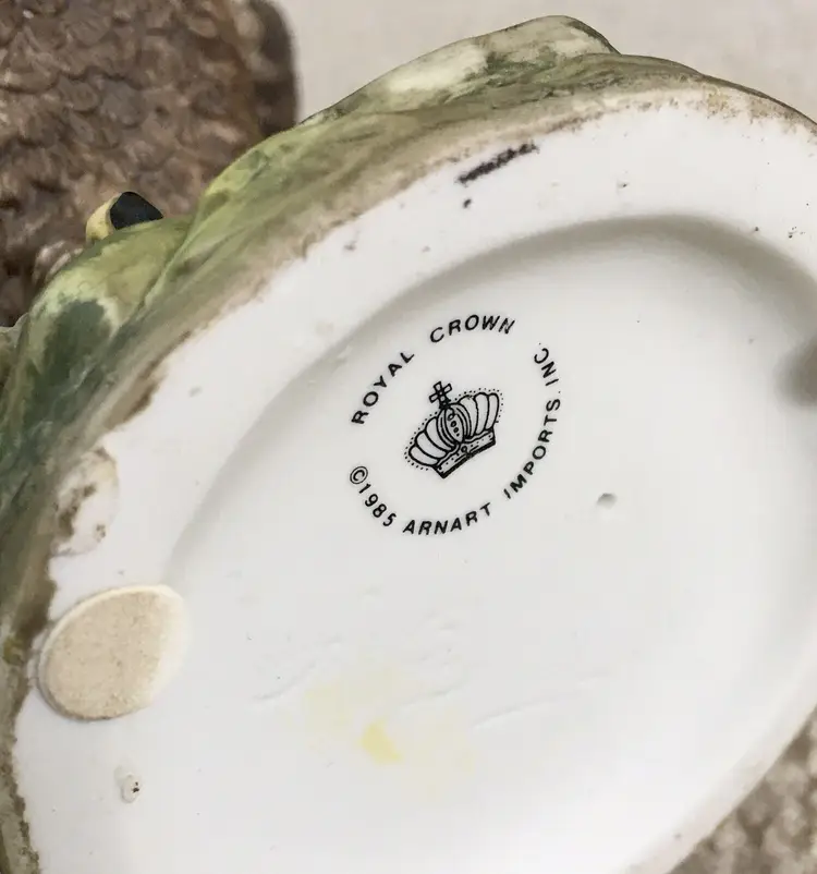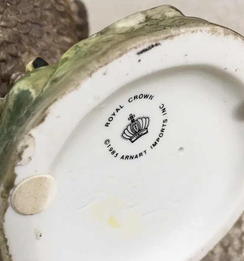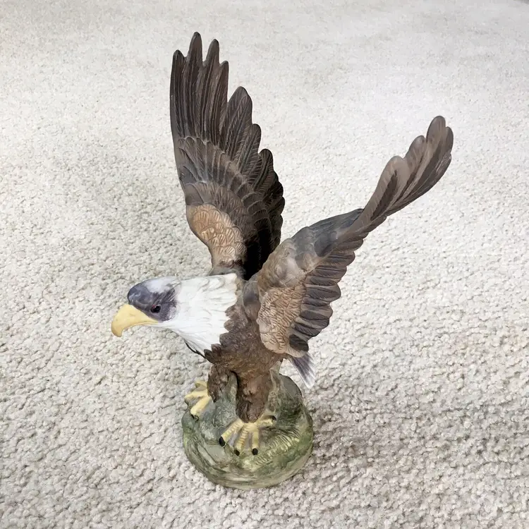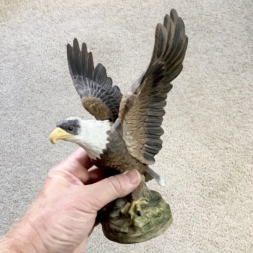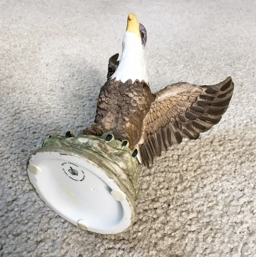 Vintage 1985 ARNART IMPORTS ROYAL CROWN bald eagle porcelain ceramic figurine sculpture signed by the artist J. Byron. Excellent condition with no chips or cracks to the porcelain ceramic. Displays Beautifully!! Very minor original paint loss. Small yellow smudge on bottom from manufacturer sticker. Measures about 9.5” high and 6” wide. See pics for more details.