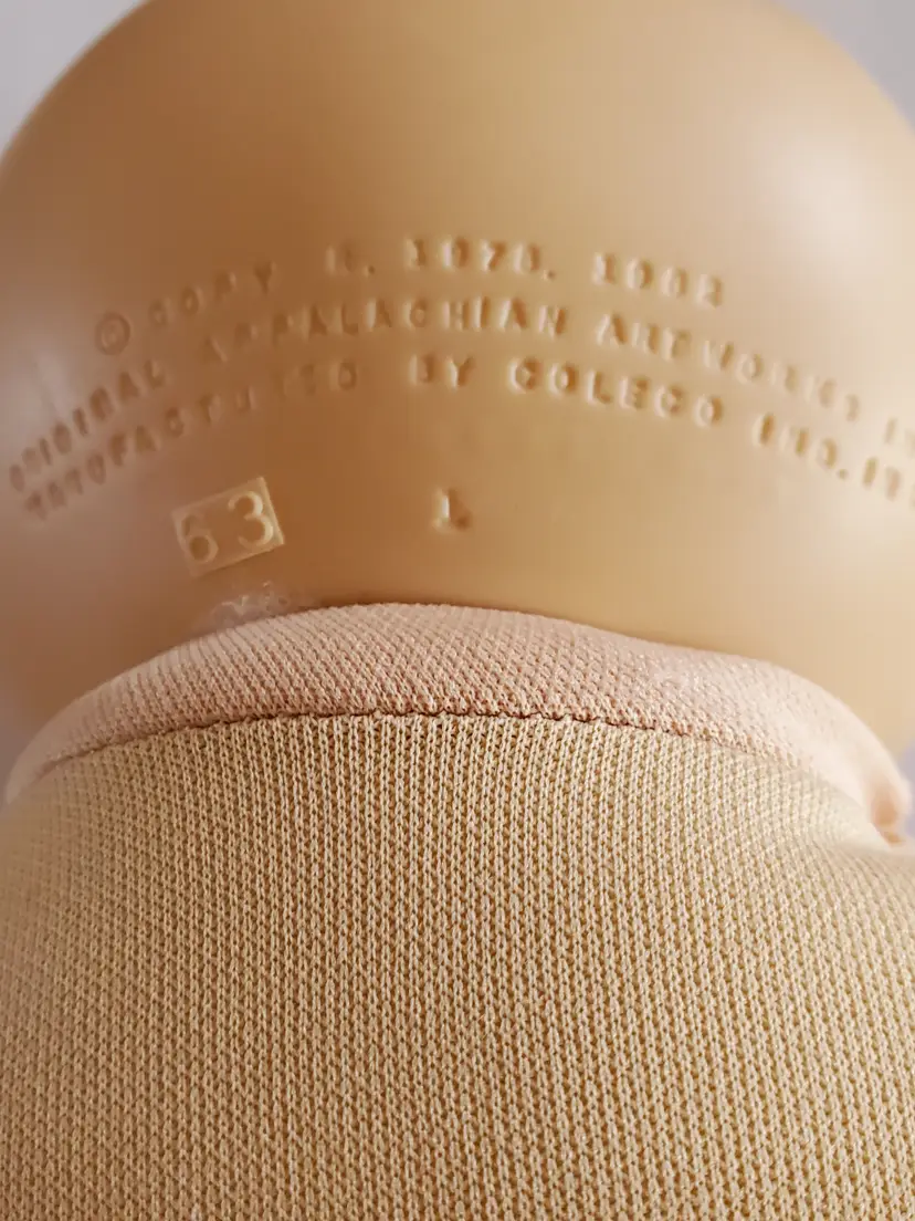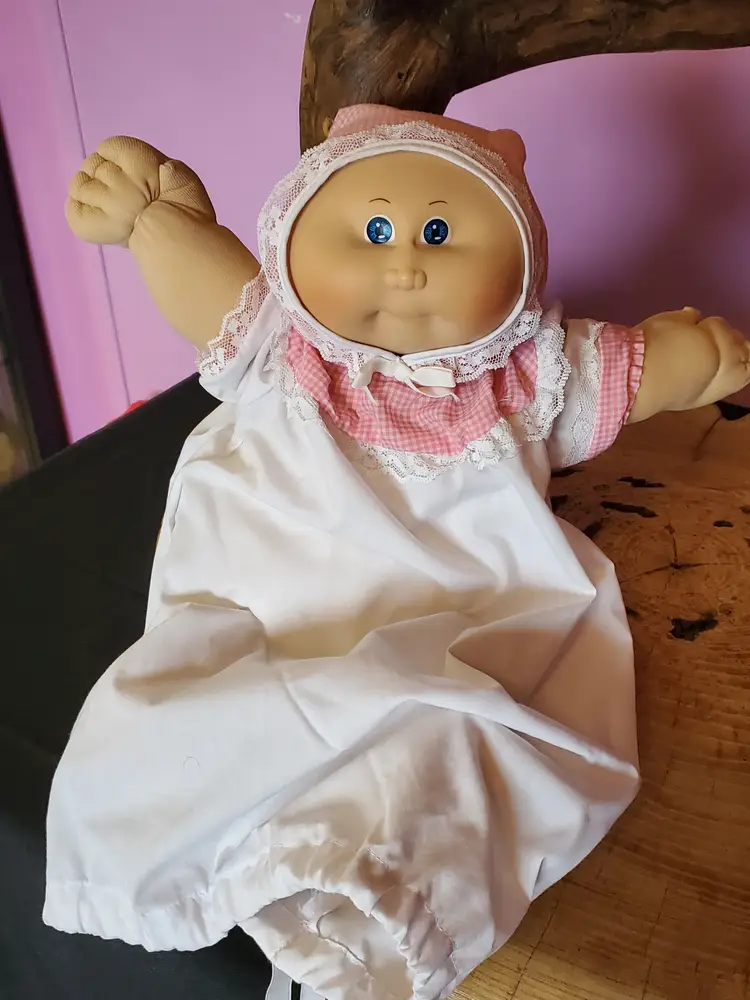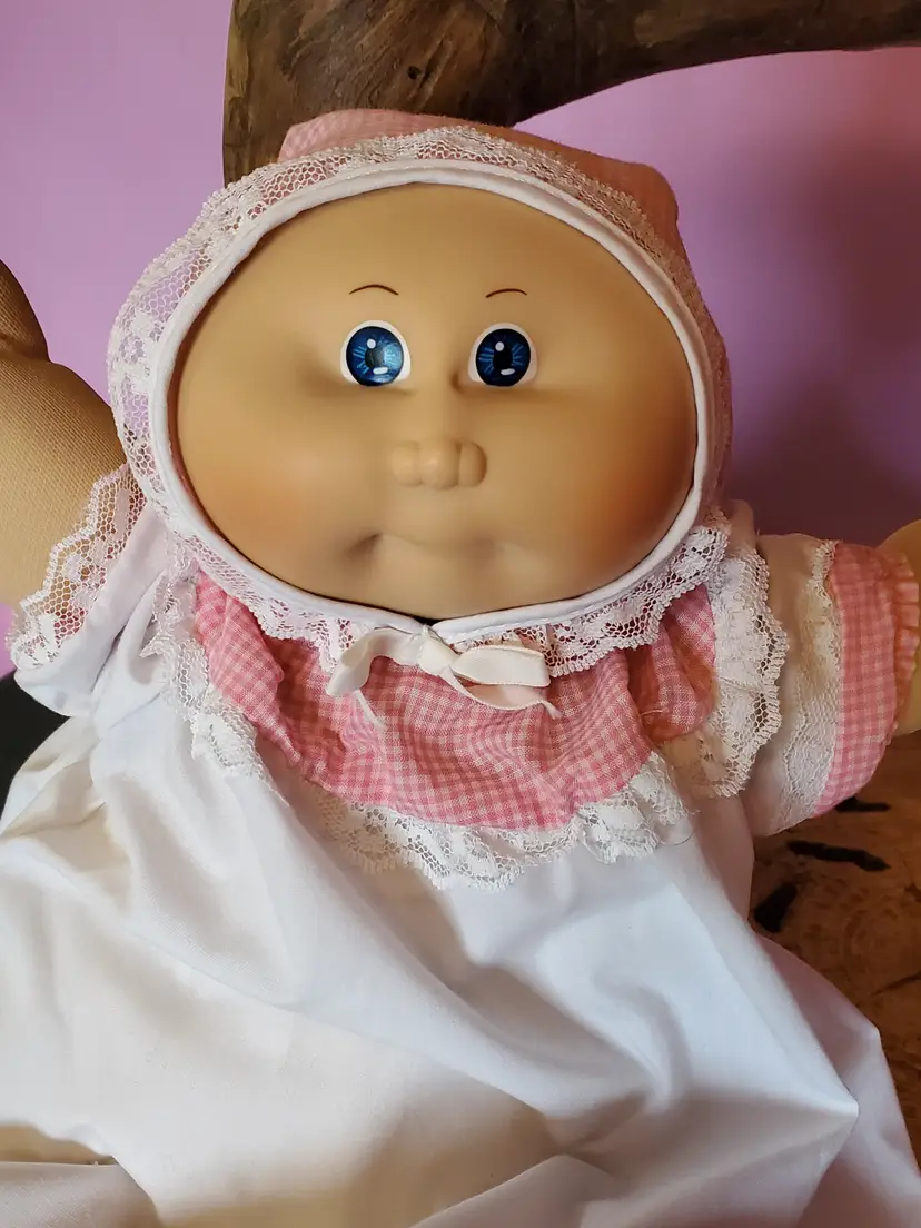 Vintage 1985 Cabbage Patch Kids Baldy With Blue Eyes. She is from the OK factory and has HM 1. She is in good used vintage condition.