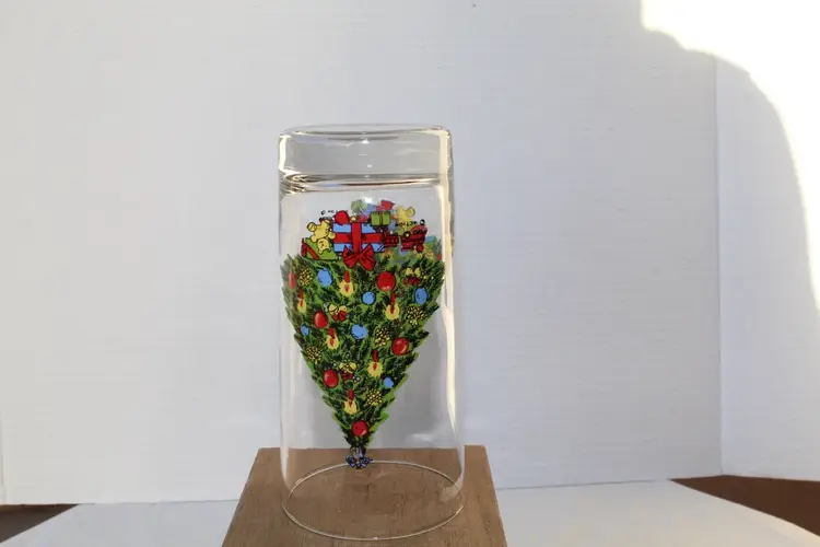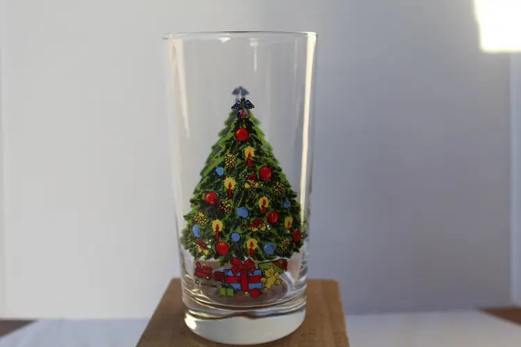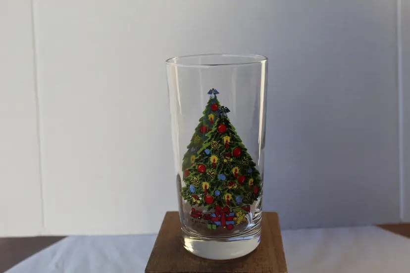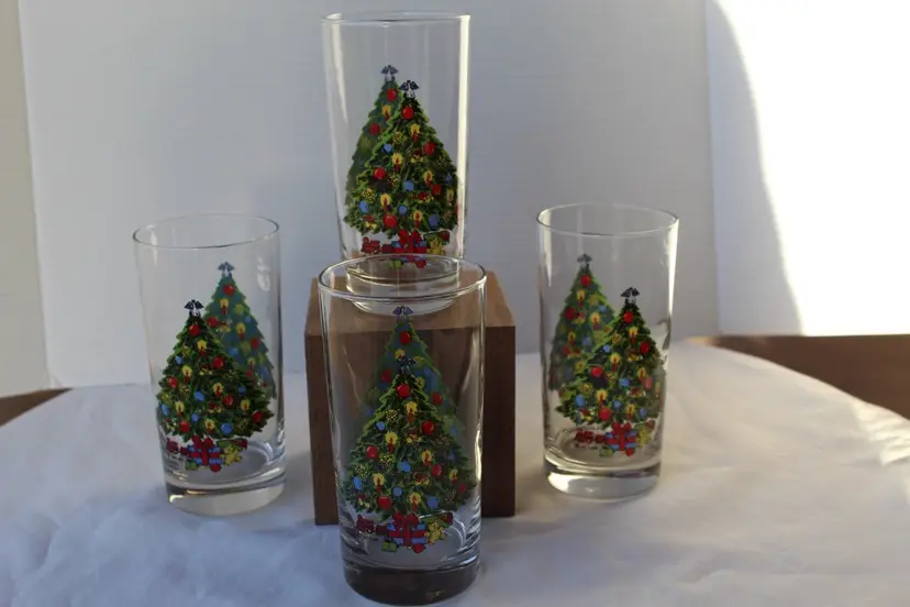 This set of 4 vintage 1985 Christmas Carlton 11 oz beverage glasses featuring a festive multicolor design, perfect for holiday gatherings or seasonal celebrations. Made of glass and manufactured in the United States during the 1980s, these collectible glasses are a charming addition to any holiday decor. These glasses are a unique and nostalgic piece of Christmas memorabilia that will add a touch of retro charm to your holiday celebrations.