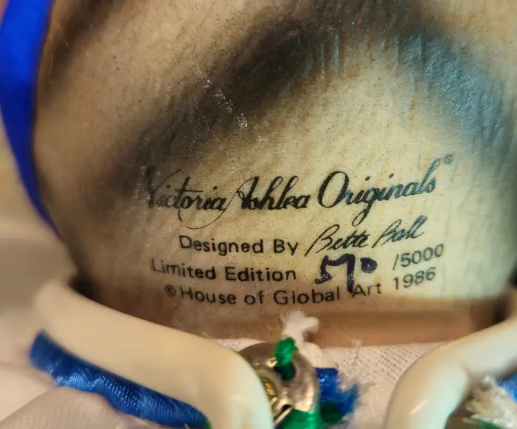 This adorable musical doll is in excellent, used condition, with no appreciable chips, scratches or cracks. The music box functions normally and the doll will come with a stand. Measurements are depicted in the pictures of the item or listed in the description of the item. Please review the photos, as they are part of the item description. Photos will always reveal noticeable defects, as will my description. Any white “blemishes” that are not pointed out in this section are from the lighting that I use for my photos. If you need clarification, please reach out to me.