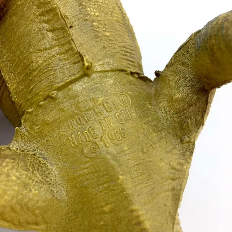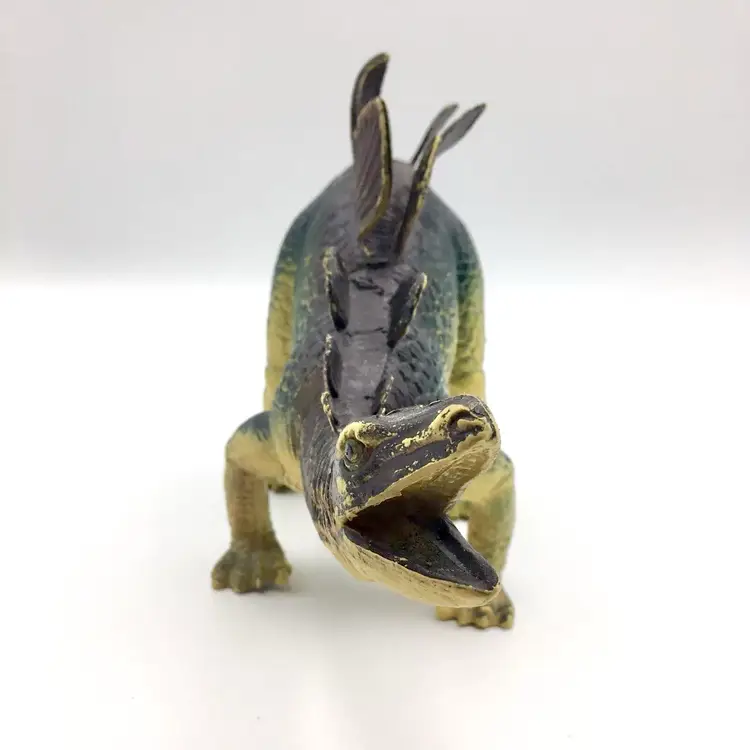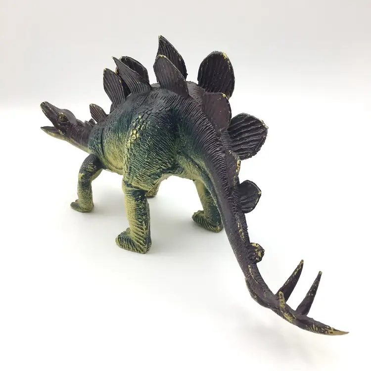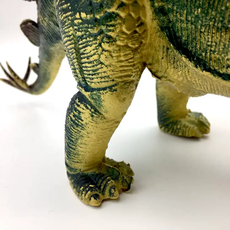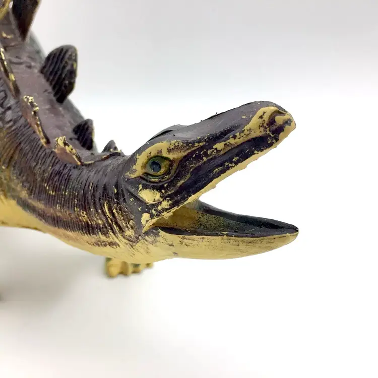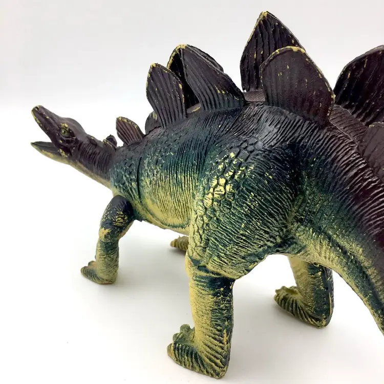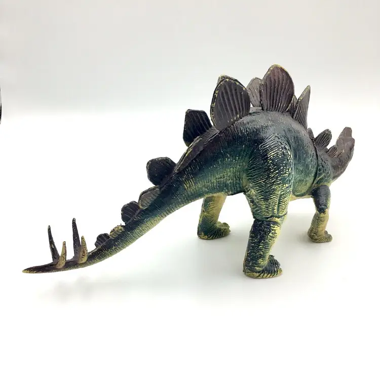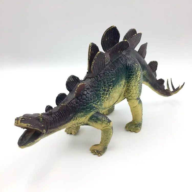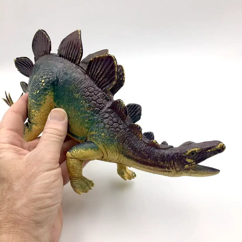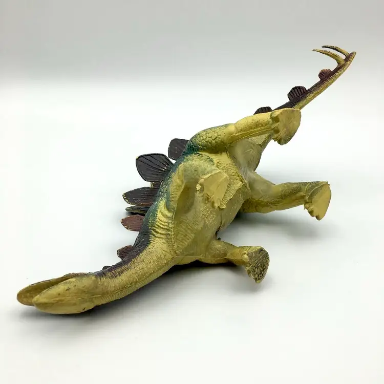 Vintage 1986 Stegosaurus hard rubber dinosaur made by Dor Mei toy company in China. Item is fully intact with only some wear to the original paint as shown. Displays Well!! Measures about 15” long. See pics for more details.