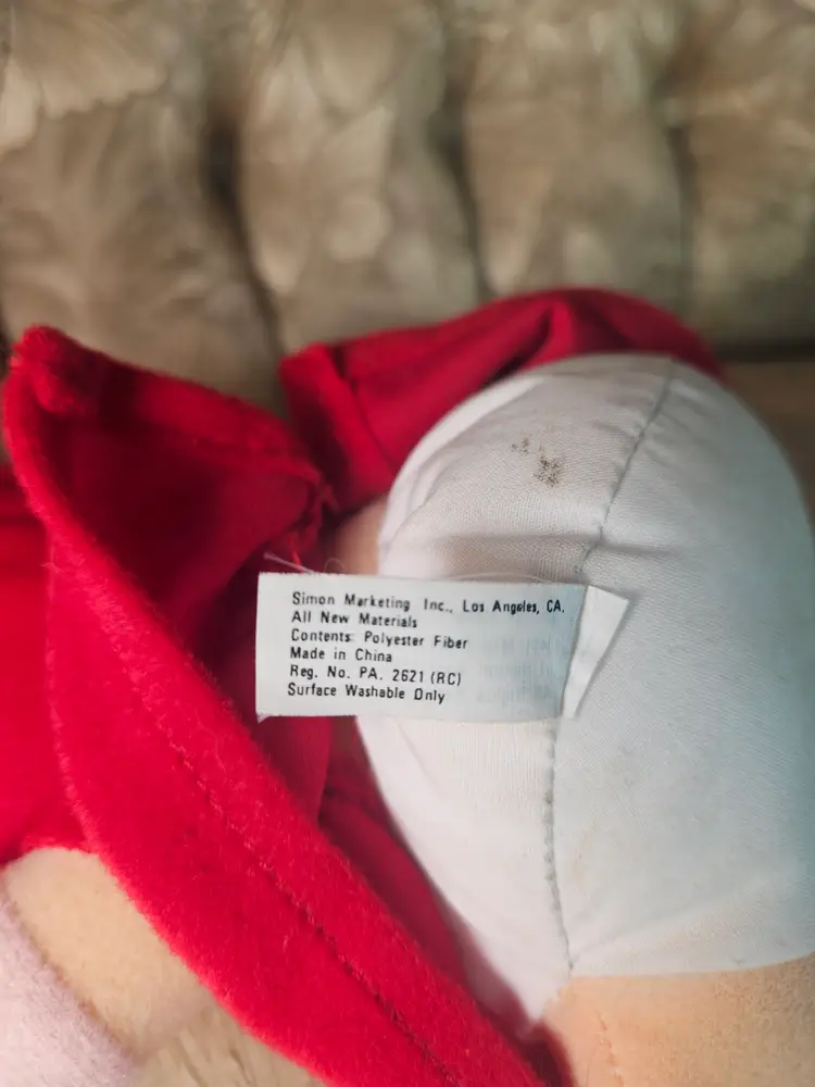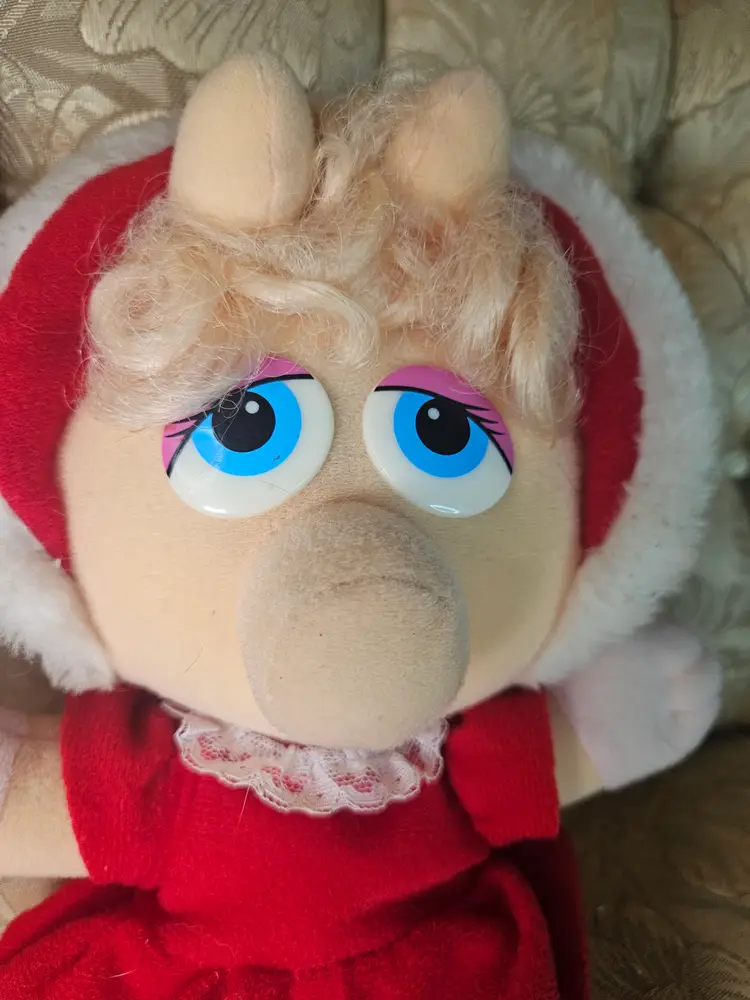 This vintage 1987 Muppet Baby Miss Piggy plush stuffed animal is a 10" toy featuring the beloved character from the Muppets franchise. Created by Jim Henson, this original McDonald's Christmas Muppet plush is made of plush material and is in its original form. With its small size and female character gender, this collectible item is perfect for Muppets fans and collectors of vintage toys. The red plush toy is recommended for children aged 4 and up, making it a nostalgic and charming addition to any toy collection.