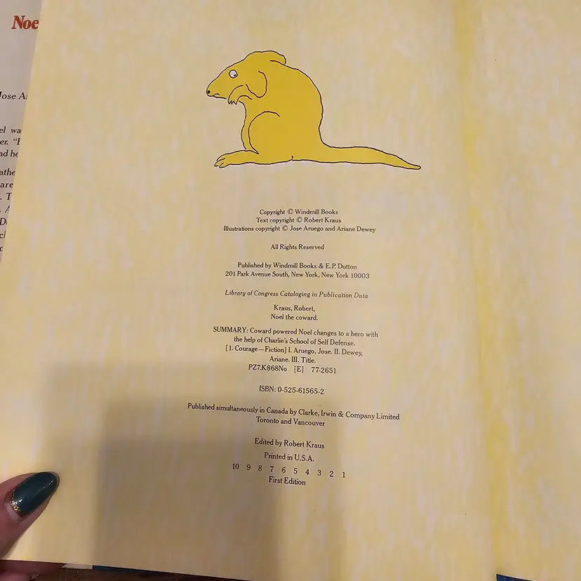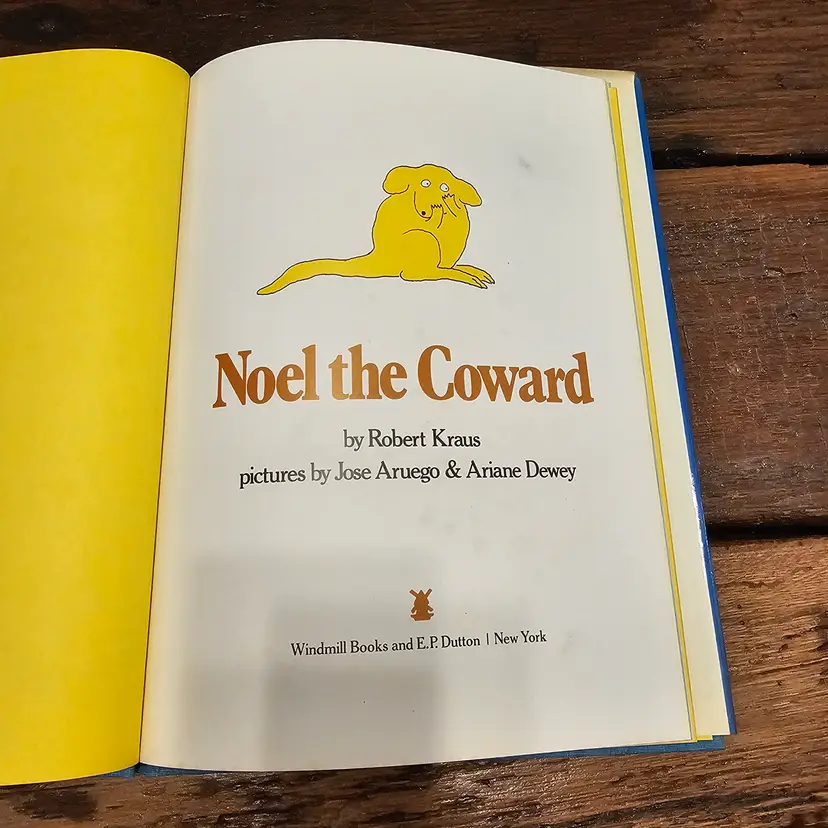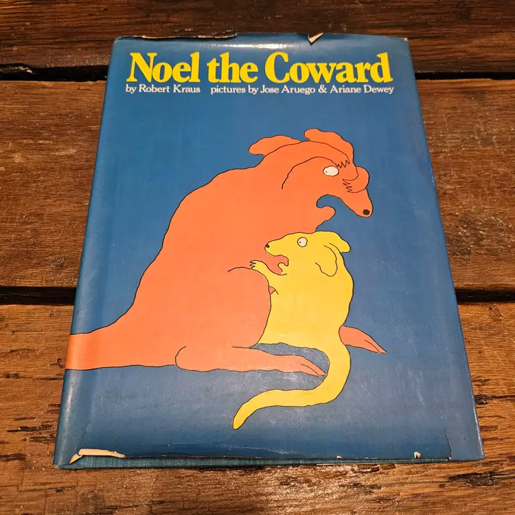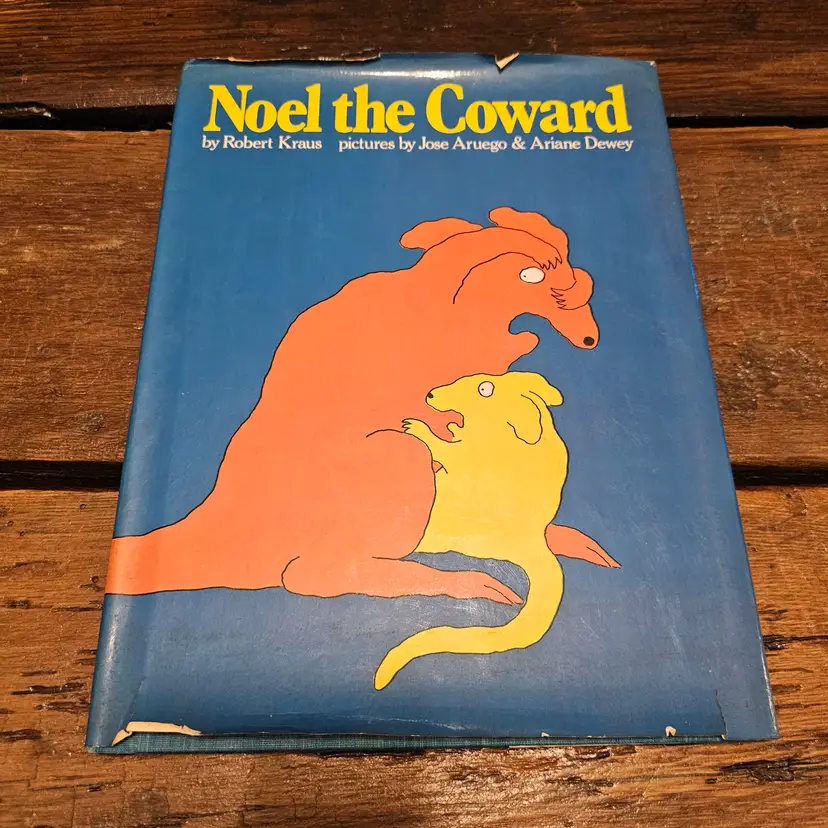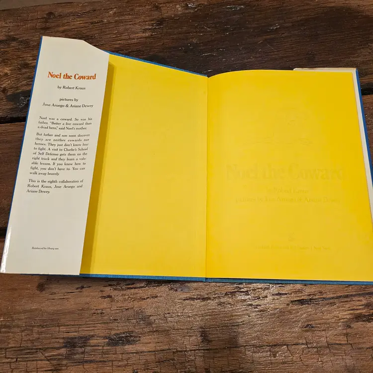 This is a vintage hardcover copy of the classic children's book, "Noel the Coward," written by Robert Kraus and illustrated by Jose Aruego and Ariane Dewey. Published in 1988 by Simon and Schuster Books for Young Readers, this charming story follows the adventures of a little coward who finds the courage to become a hero with the help of Charlie's School of Self-Defense.
