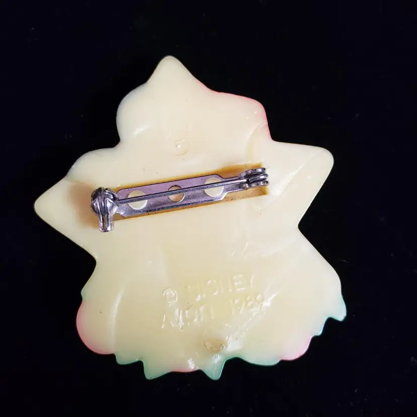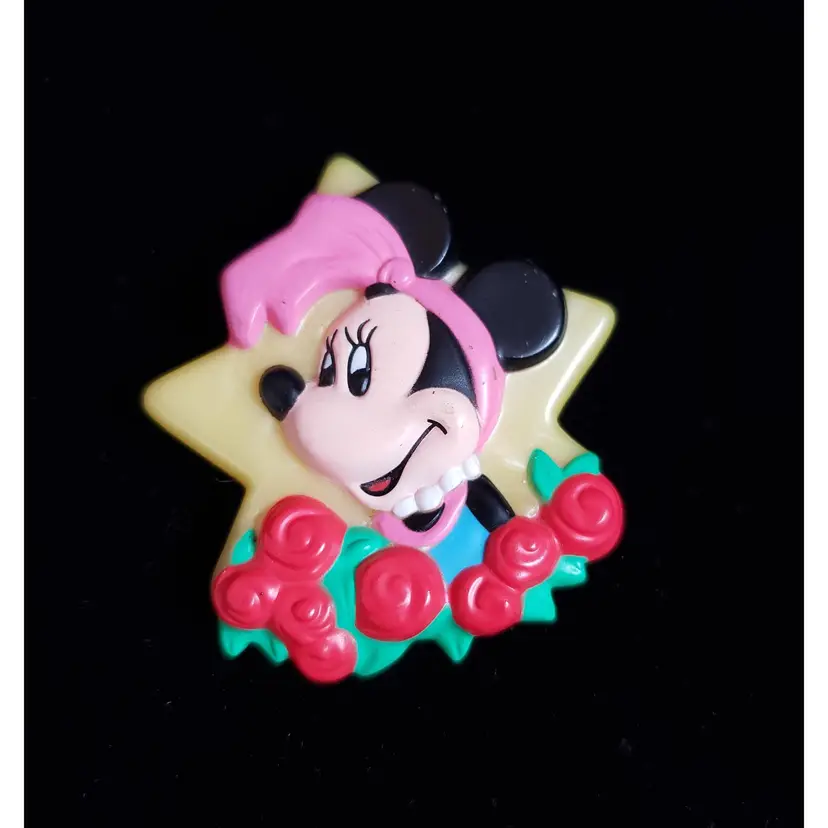 Vintage 1989 plastic Disney Hollywood Star Minnie Mouse brooch. Has a couple of minor dings but in overall good condition. Measures approximately 2" across.