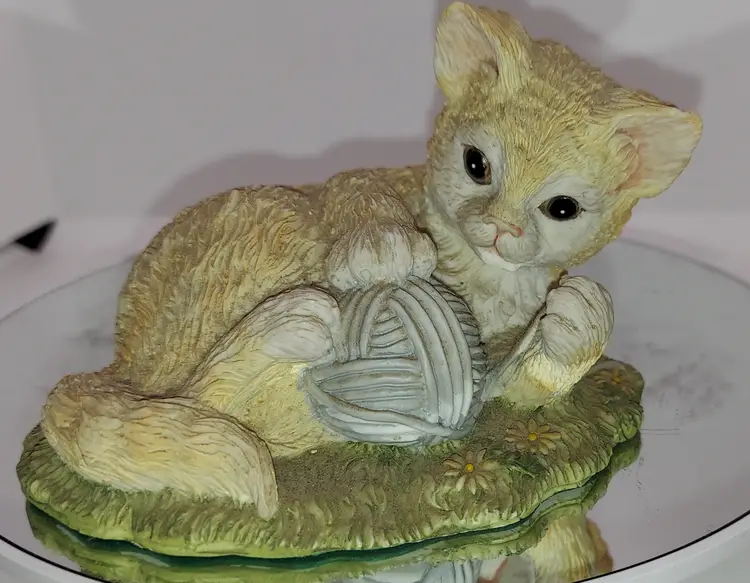 This vintage collectible figurine is a Nature's Friends: Kitten with Yarn Ball, produced by the Summit Collection.