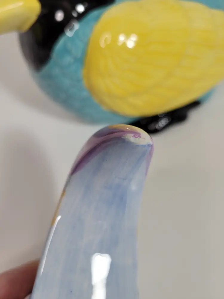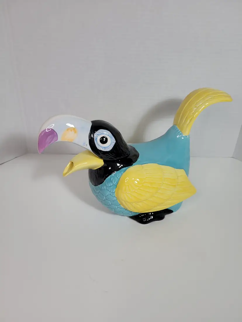Vintage 1990 Berscrund Toucan Hand Painted Ceramic Teapot Excellent! This whimsical charming piece is in Excellent condition! Flaw: tiny worn spot on the tip of his beak, not readily or easily noticeable. See ALL photos for best description Contact me with any questions Ships fast