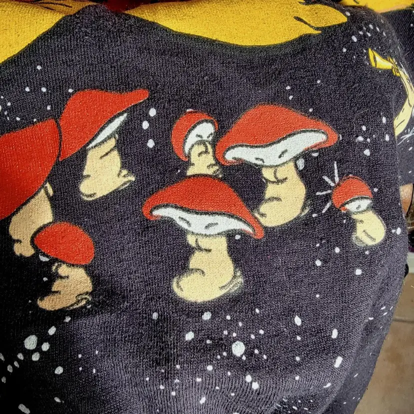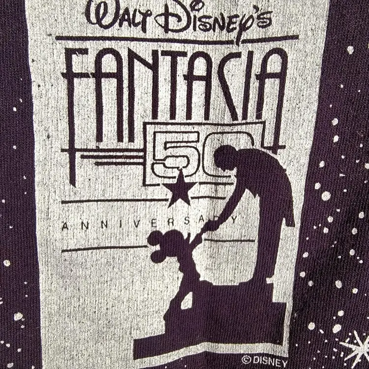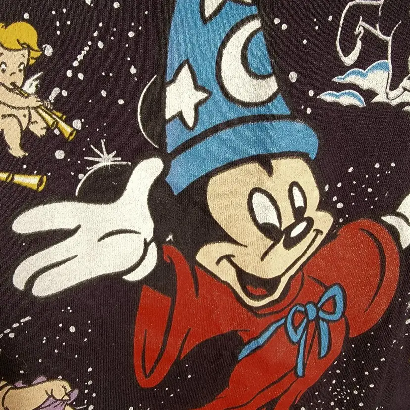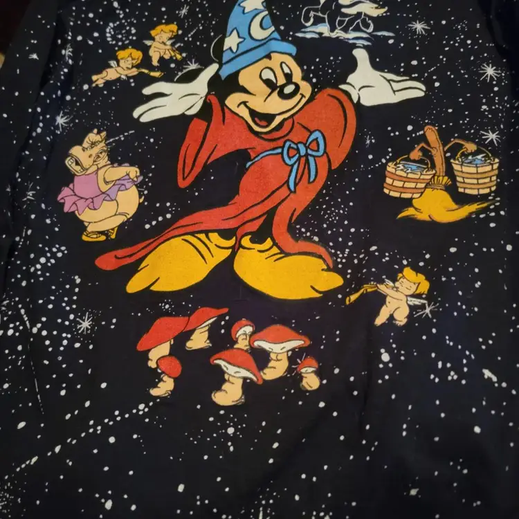 Amazing vintage condition, must have only been worn once or twice, since the tags are missing. Rare find full print Fantasia 50th anniversary print, long sleeves t-shirt. Very little wear, if any. The colors are vibrant, and the all-over stars add to the magic. Giant Sorcerer's Mickey on the front surrounded by some of Fantasia's most loved characters, like the dancing hippo. From Disney Character Fashions, copywrite Walt Disney Productions, Size Large. In very good condition, no stains, tears holes or signs of wear. Please see photos for details and condition.