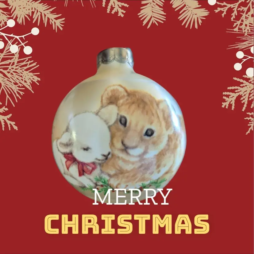 Add a touch of vintage charm to your Christmas tree with this beautiful Hallmark Keepsake Peaceful Kingdom Glass Ornament. The ornament features a round shape and measures 2 inches in height and width. It is designed with a multicolor pattern and a lamb and lion cub character, making it a perfect addition to any animal-themed collection.