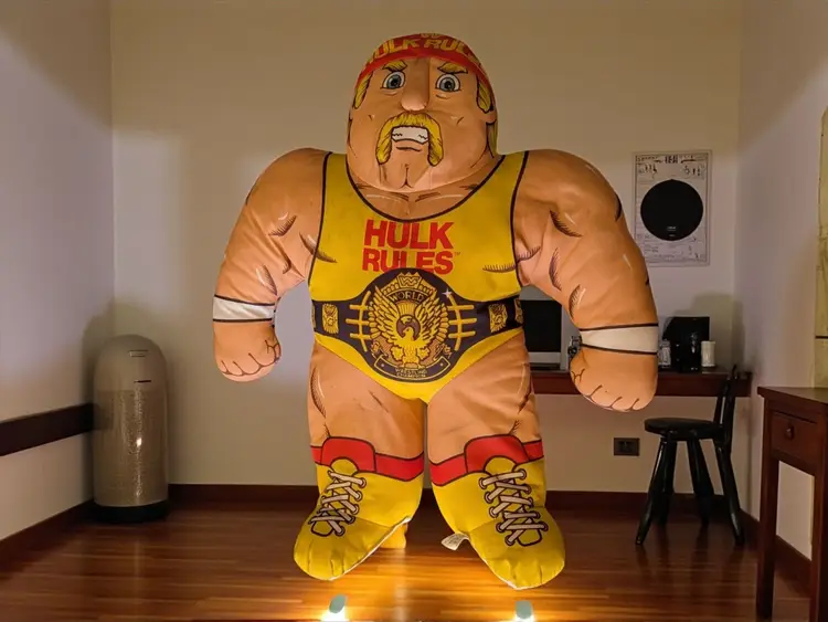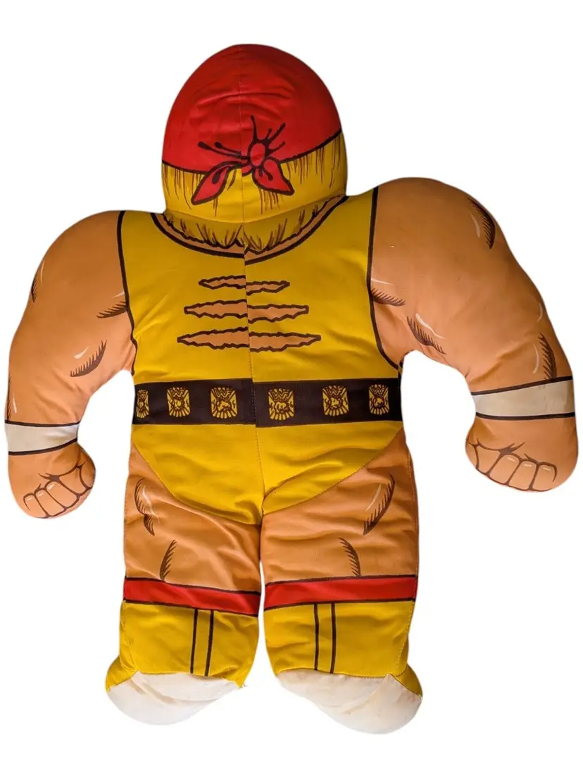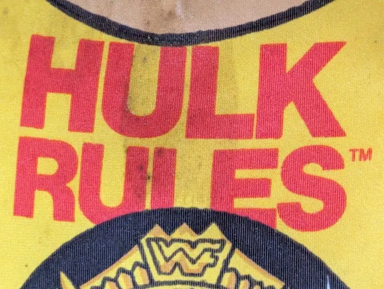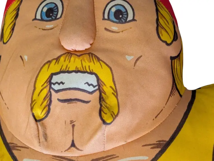 The Vintage 1990 Hulk Rules Hogan Cushion Pillow Plush is a nostalgic collectible featuring the iconic WWF wrestler, Hulk Hogan. This officially licensed product by Tonka is 22" tall and multi-colored, perfect for any wrestling fan's collection. Made in Mexico, this unisex adult pillow showcases the classic Hulk Hogan character in a fun and unique way. It is like-new except for a few marks. I think it's just scuff marks.