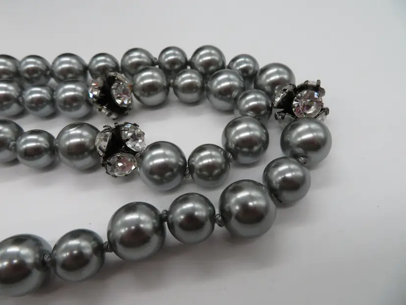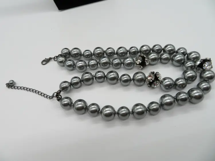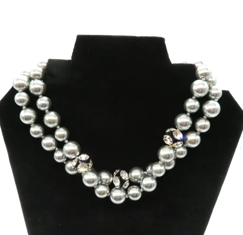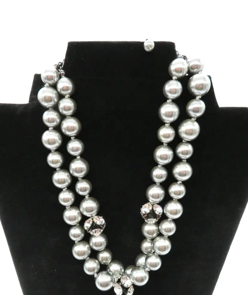 Item Description: For your consideration is a vintage 1990’s Costume Jewelry necklace. It is a two-strand necklace with gray color faux pearl & crystal accent beads, and silver tone metal clasp and extender. The necklace is 13” long with a 3” extender. The camera cannot capture its beauty! Shipping: I ship twice a day, 11am cst and 6pm cst. All items are securely packaged in foam & bubble wrap to protect your investment. All items are cross posted and available in-store. Lot9-11 Thank you for viewing my item, please check out my other listings!