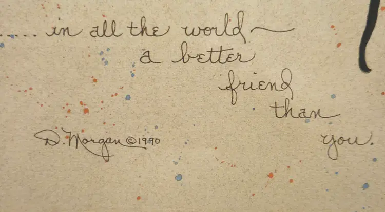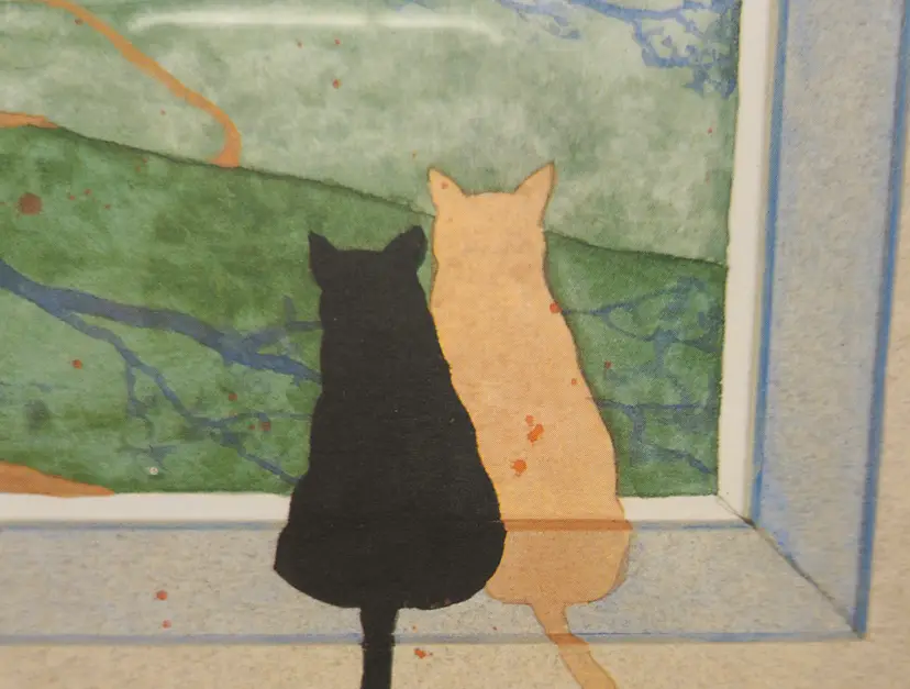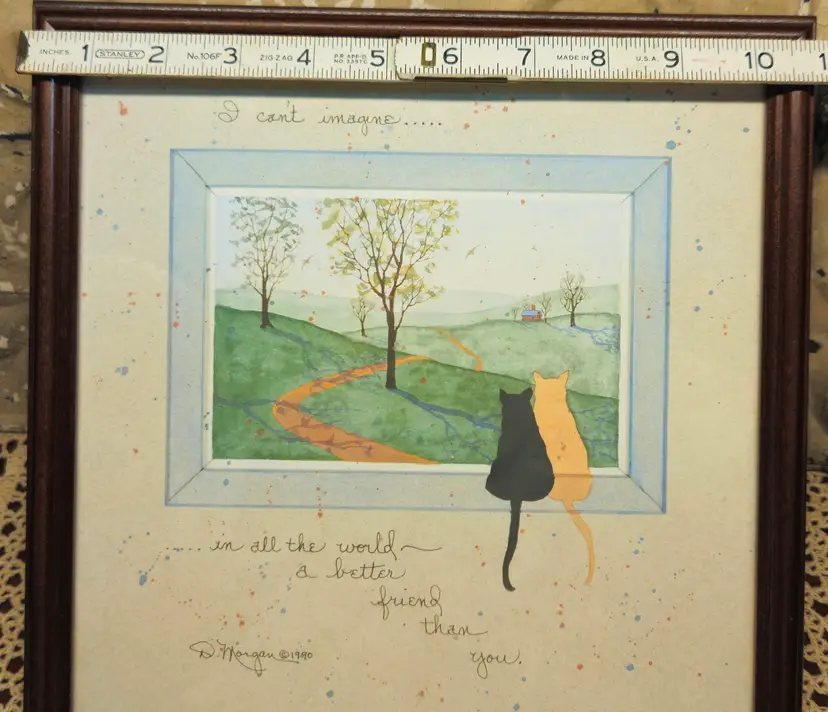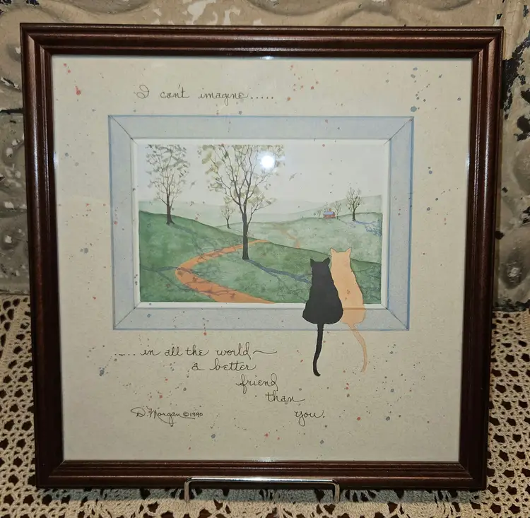Vintage 1990 Signed D. Morgan Cat Friends Lithograph Print Framed 11" x 11"