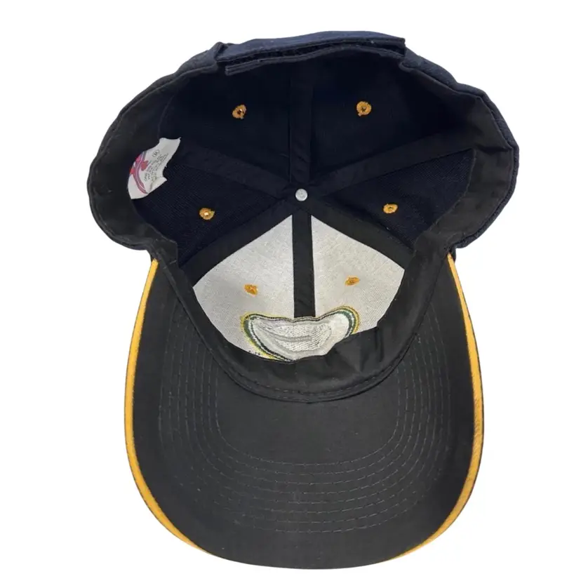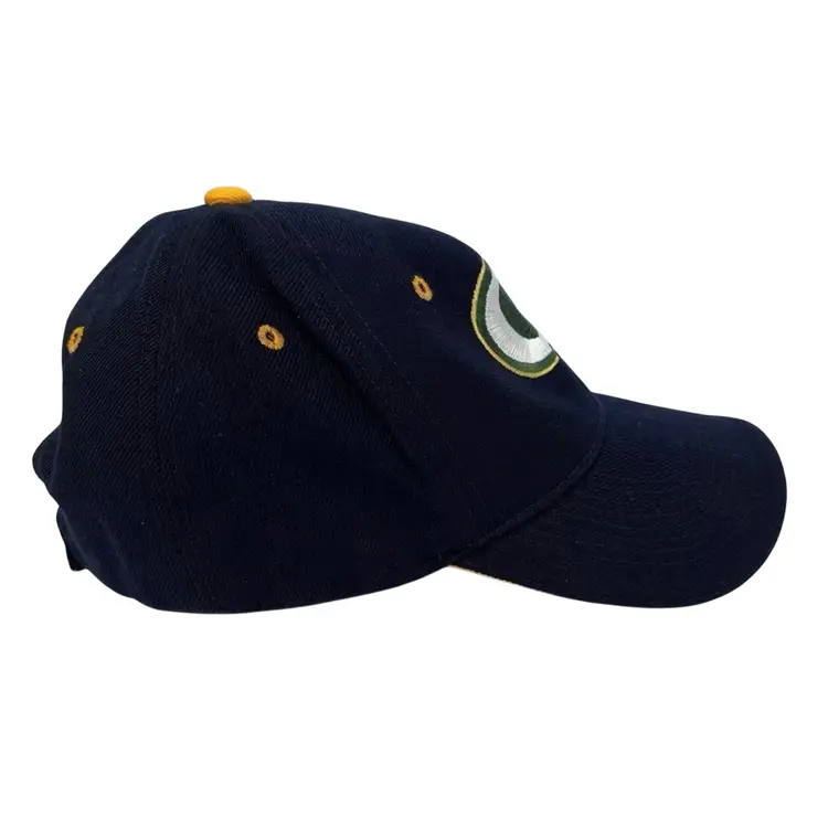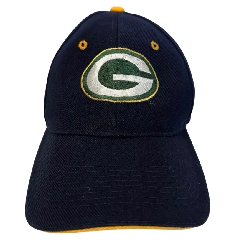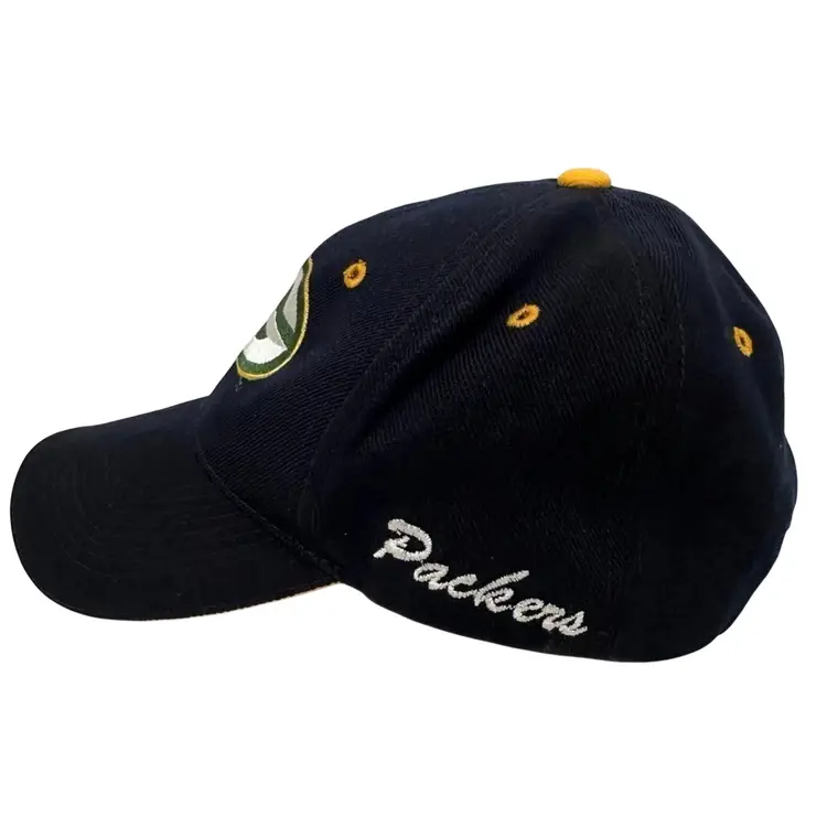 The Vintage 1990's Green Bay Packers NFL Black Adjustable Hat by K Products is an officially licensed cap perfect for any fan of the National Football League. This unisex adult hat features the iconic Green Bay Packers team logo on the front, making it a stylish accessory for any football enthusiast. The black color and one-size-fits-all design make it a versatile piece that can be worn during the regular season games or any time of the year to show your support for the team. Whether you're at a game or just out and about, this hat is a must-have for any Packers fan.