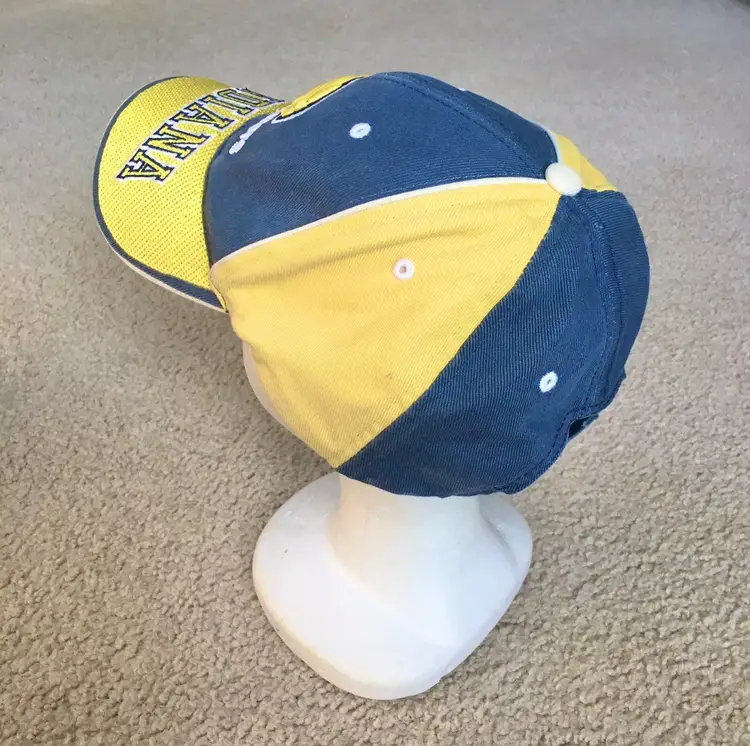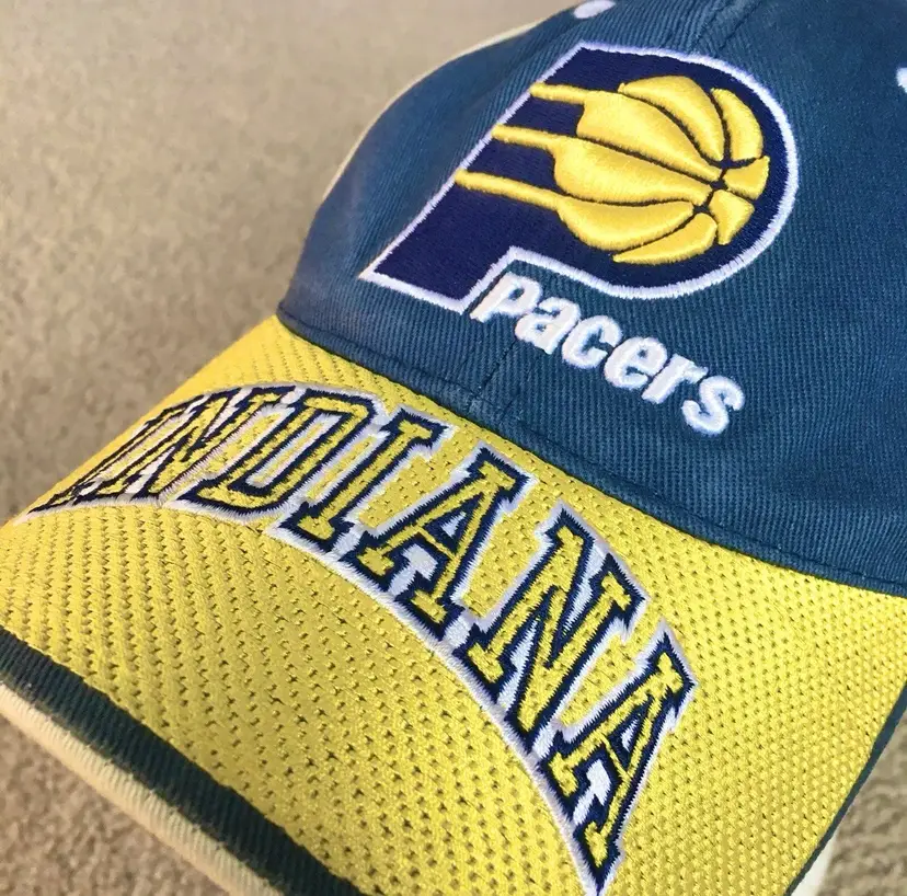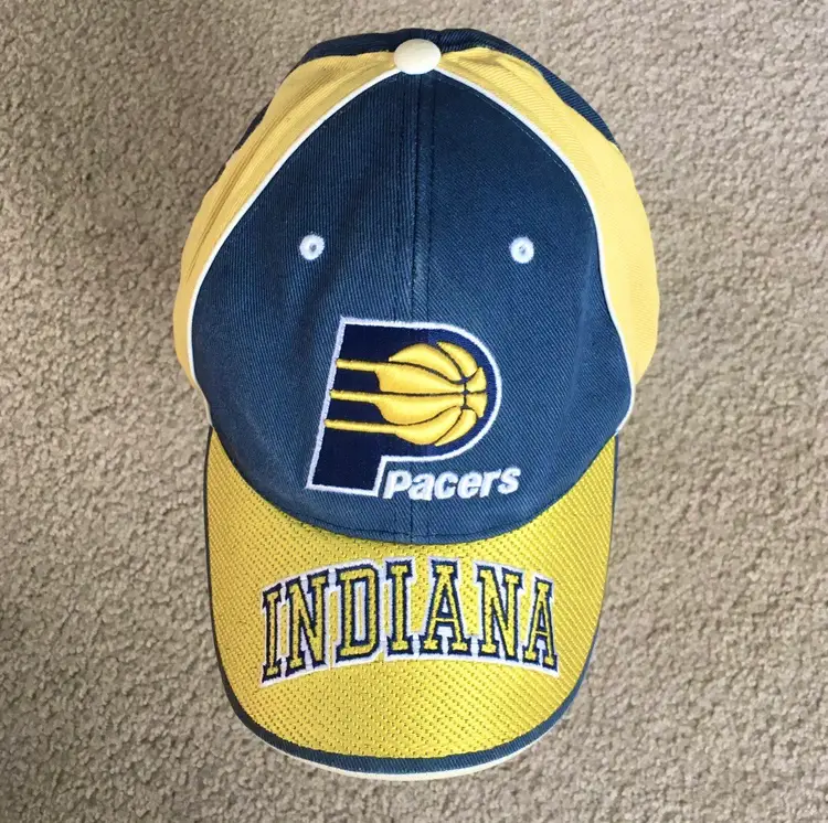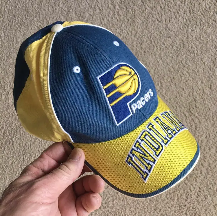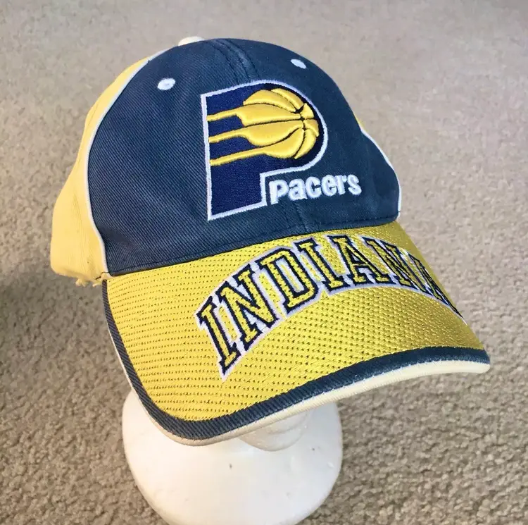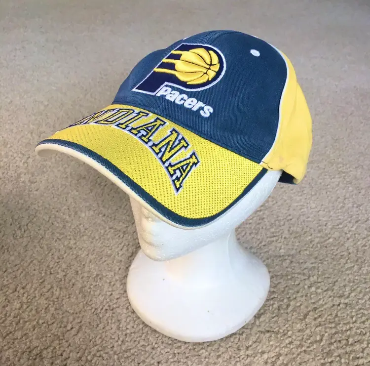 Vintage NBA INDIANA PACERS embroidered team cap hat with adjustable strapback. Estimate this dates to about 1990s. Very good condition with little sign of use. Clean throughout!! This specific design with INDIANA embroidered across the brim is somewhat rare. Hat measures about 11” front to back and the brim about 5.75” wide. See pics for more details.