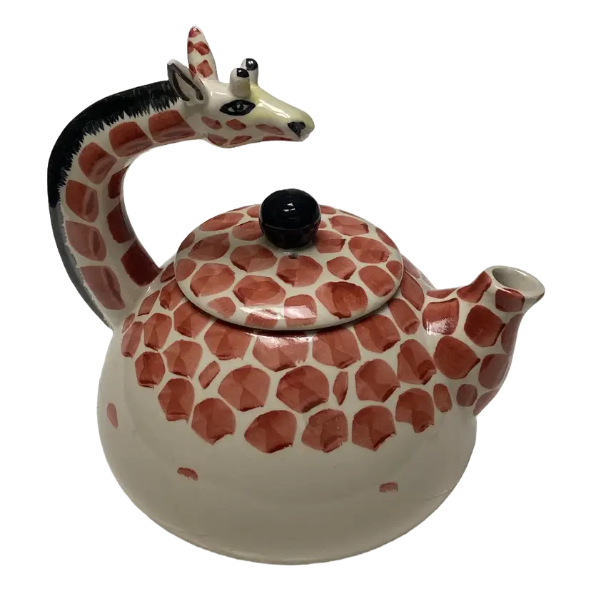 Vintage 1990's Pier One Ceramic Giraffe Shaped Teapot, 6.5" Tall