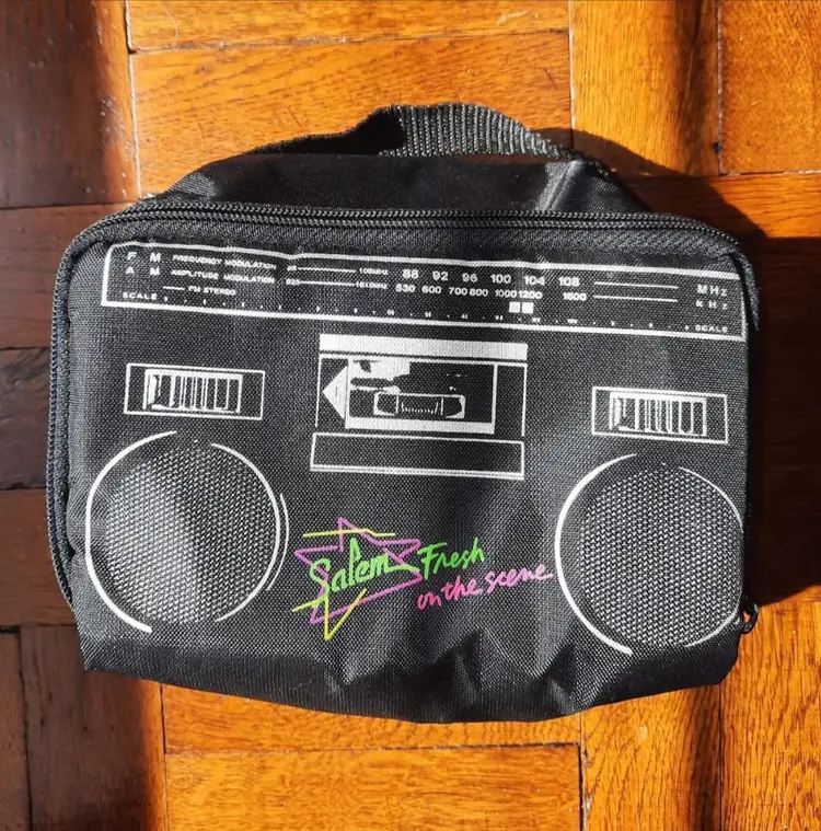Vintage 1990s deadstock Salem Fresh cooler, holds one can. Graphics of a boom box on front, back and sides are blank. Super clean, never used.