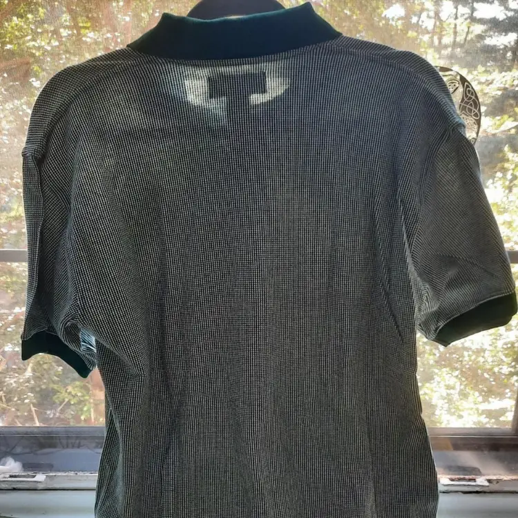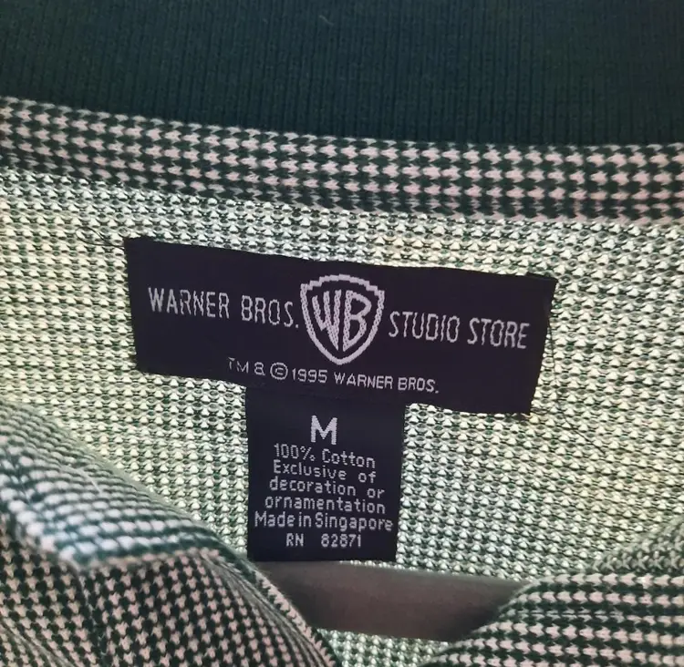 Green and white checked golf shirt embroidered with Taz on the upper left corner. This vintage (1990s) golf shirt is from the official Warner Brothers Store. There is nothing on the back. 100% cotton, Men's medium, in excellent condition.