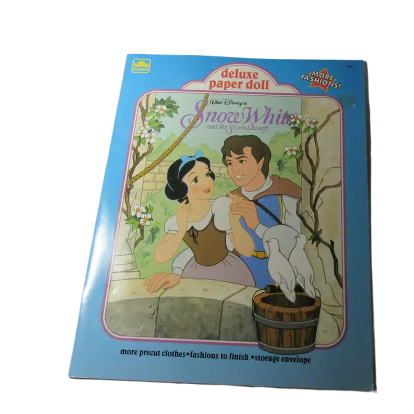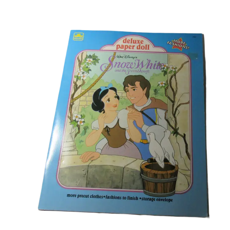 Vintage New 1991 Disney's Snow White Deluxe Paper Doll Book-Golden ISBN 0-307-01697-9 More Precut clothes/fashions, storage envelope