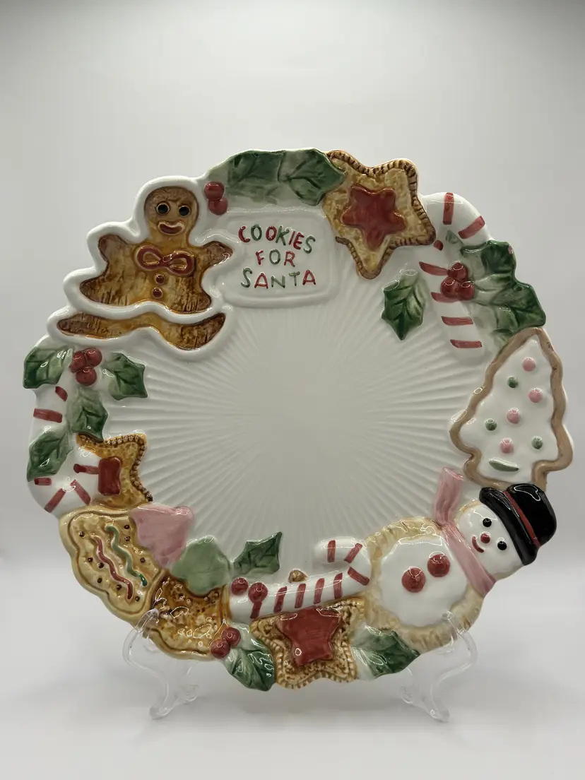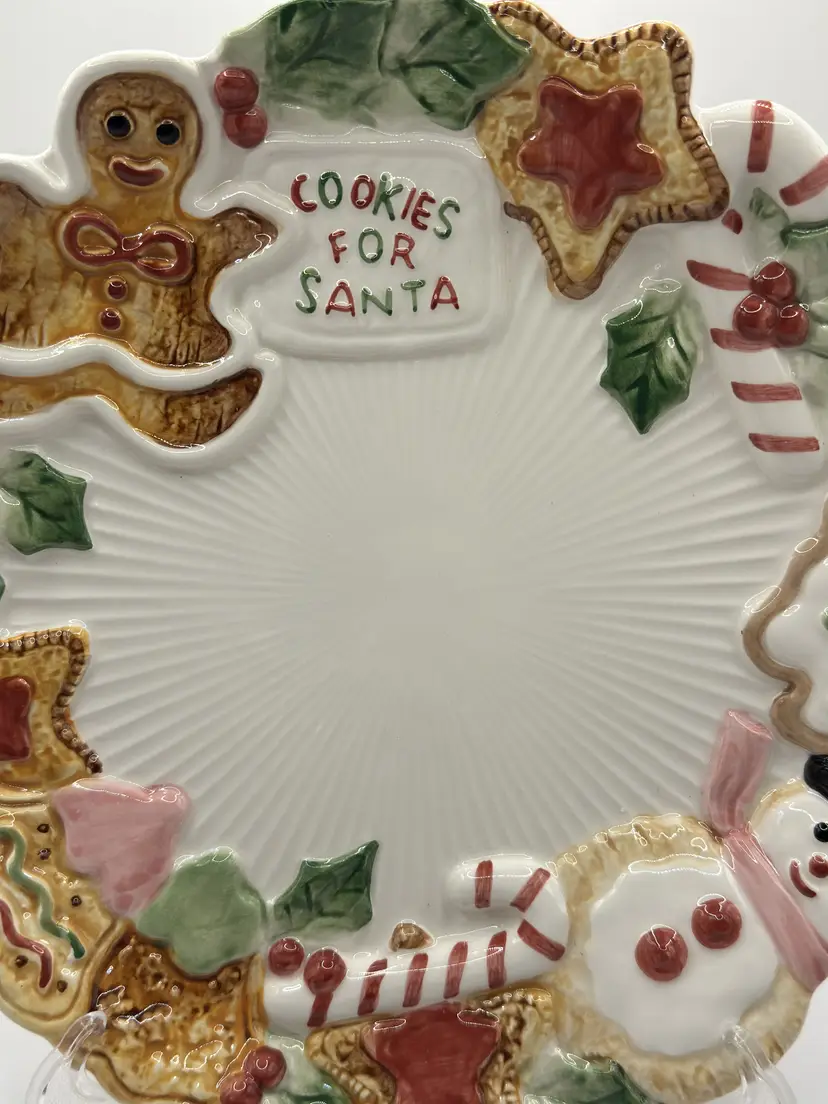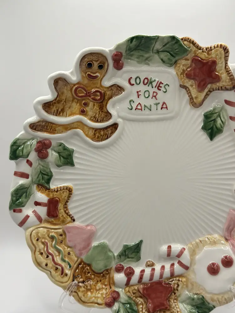 This vintage 1992 Fitz And Floyd Nutcracker Sweets “Cookies For Santa” Christmas plate is a delightful edition to a holiday collection. Cheerful sweets adorn the edges of the plate. Excellent condition, no chips or cracks. Measures 10.5 inches. Weighs 1.8lbs.