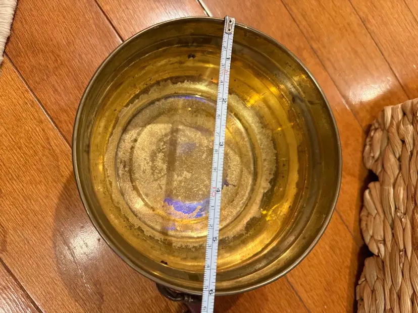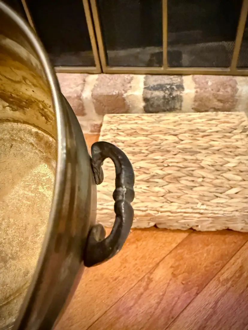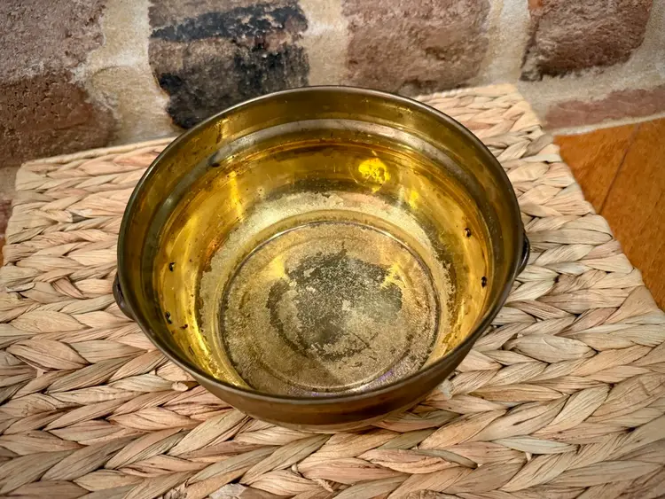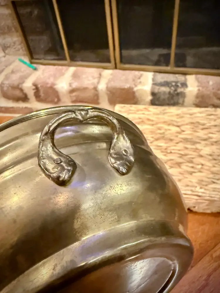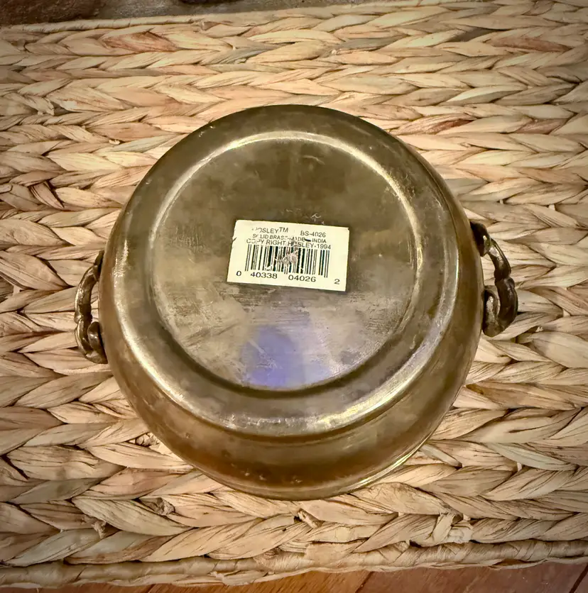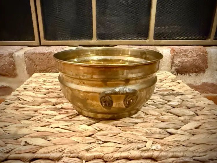 Add a touch of timeless warmth to your space with this vintage Hosley solid brass bowl, complete with elegant handles and a gently hammered finish. Its versatile design makes it ideal as a planter for succulents, a catch-all bowl for keys or jewelry, or a decorative centerpiece on a coffee table or shelf. The brass surface has developed a soft, authentic patina that enhances its vintage charm. Whether styled with greenery or left empty as a sculptural accent, this bowl brings effortless boho-meets-mid-century character to any room. Details: Maker: Hosley Material: Solid brass Finish: Warm, polished brass with natural patina Dimensions: Approximate size: 6” diameter × 3” tall Condition: Very good vintage condition; light wear consistent with age and use