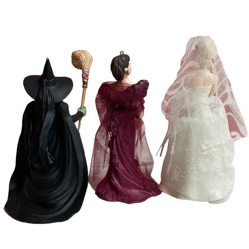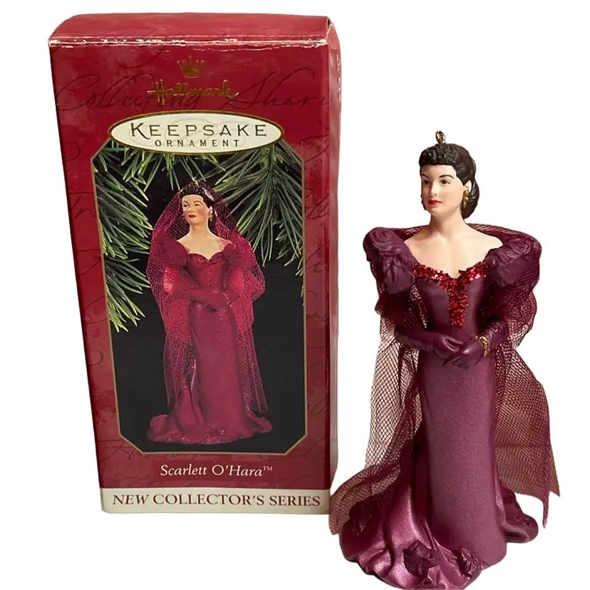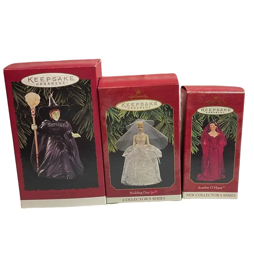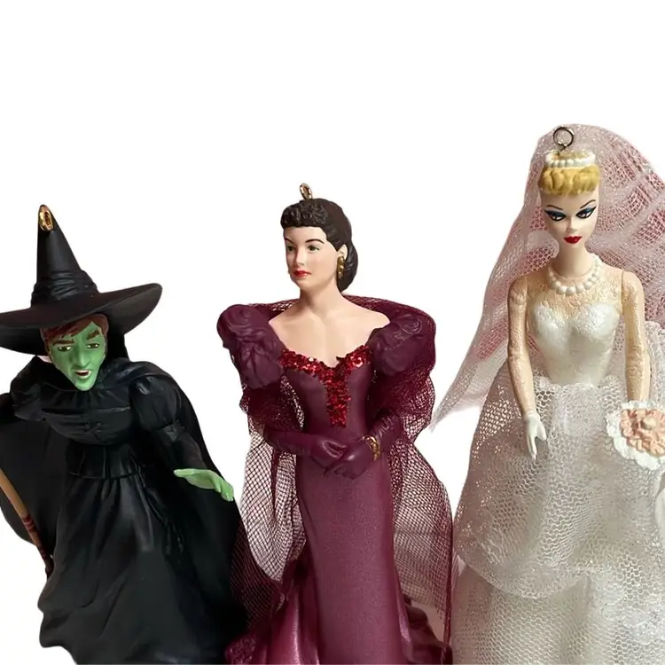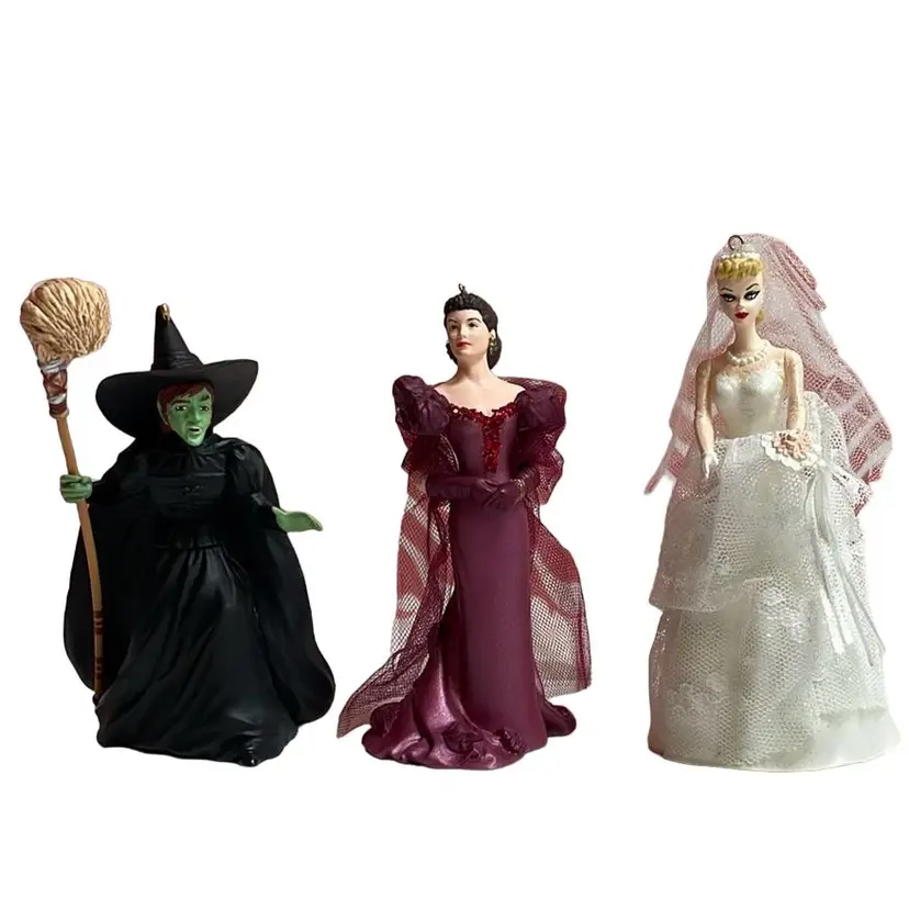 All three vintage Hallmark keepsake ornaments sold together for one low price. Measuring approximately 4 1/2in tall. Wizard of Oz wicked witch of the west, wedding day Barbie and Scarlett O’Hara. All the ornaments are in great vintage used condition. No breaks, cracks or missing pieces.