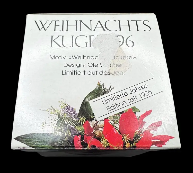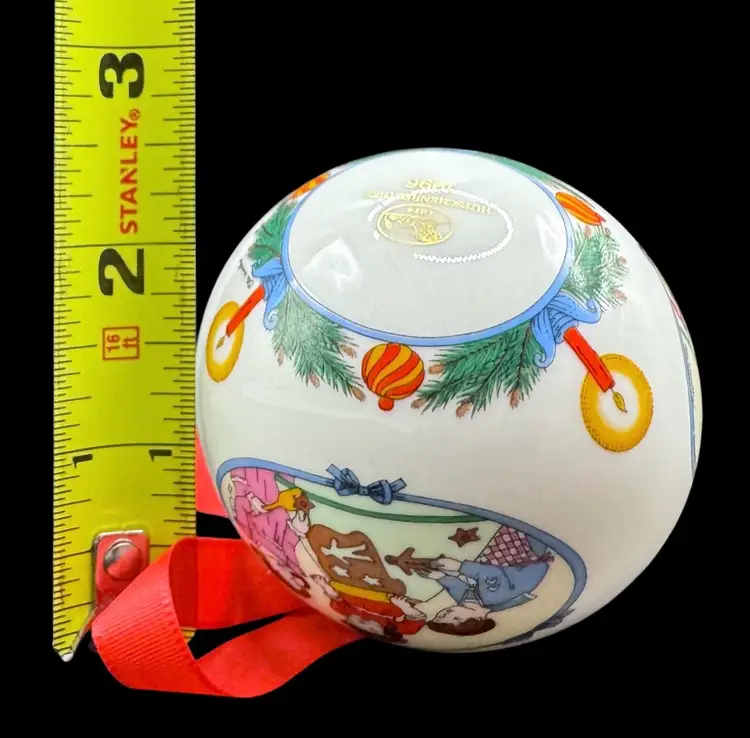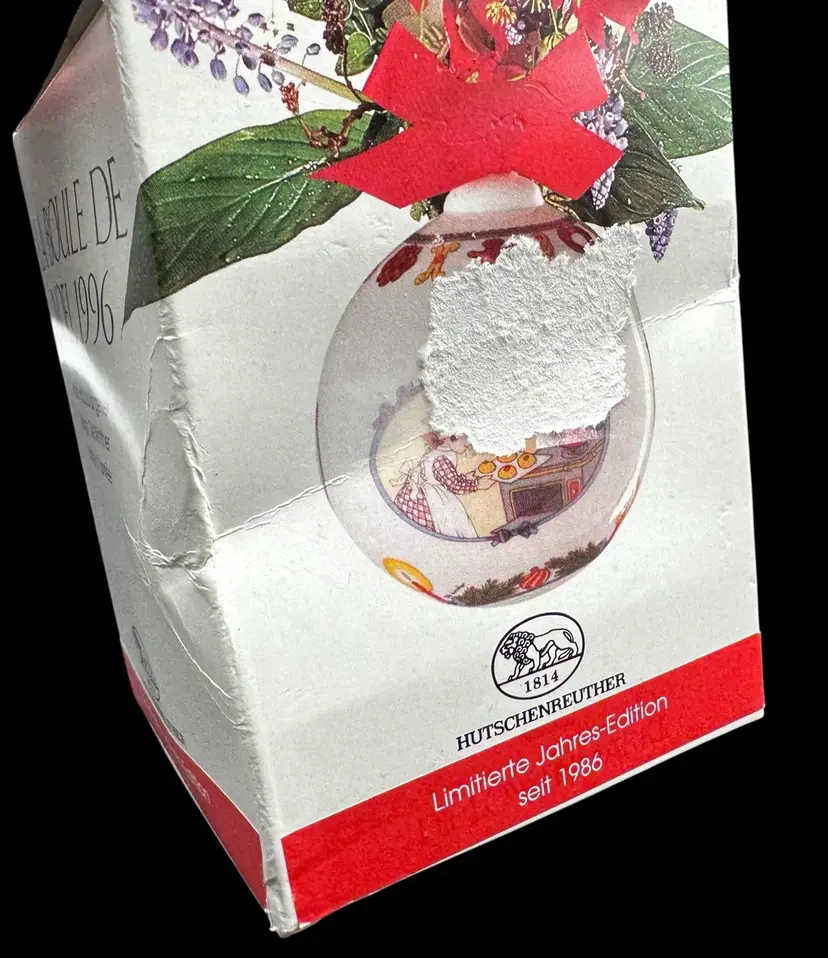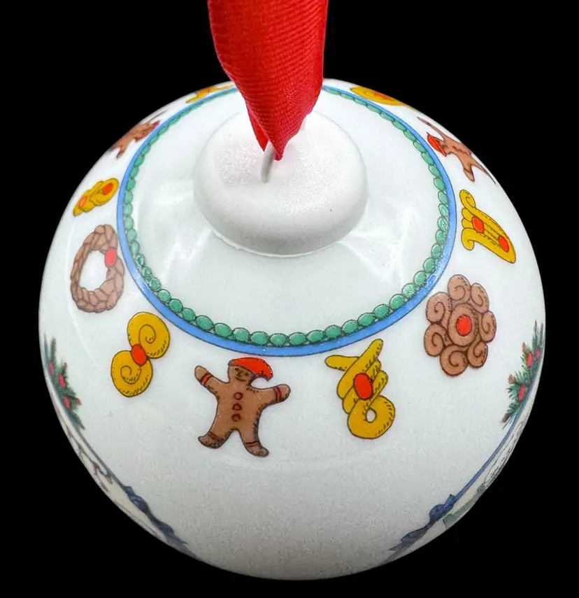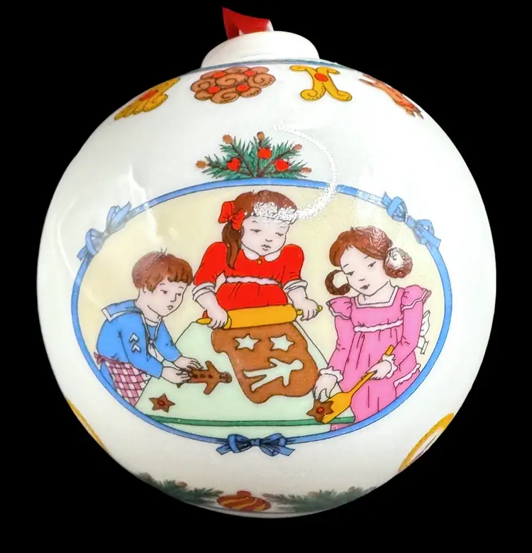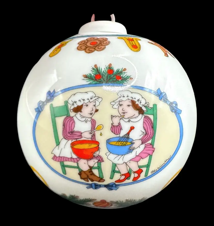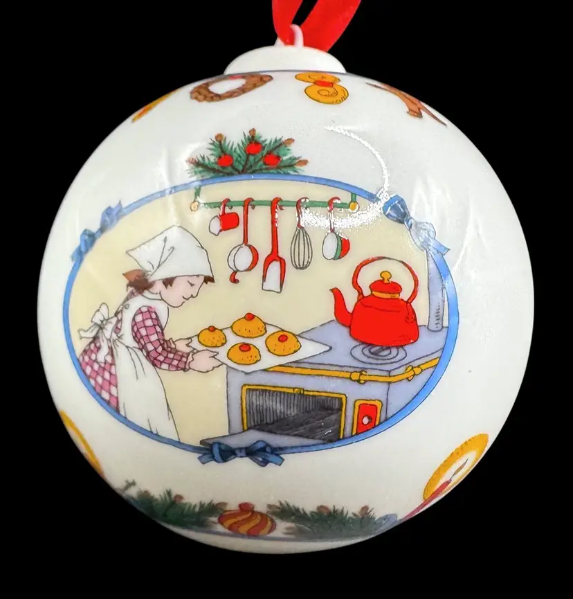 Christmas ball depicting various scenes of girls baking cookies and pastries. Comes in original box.