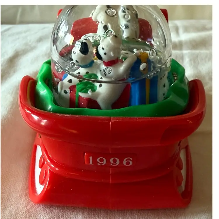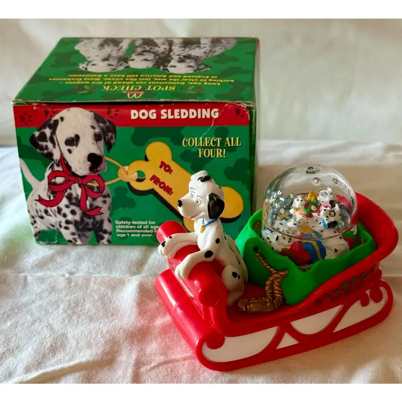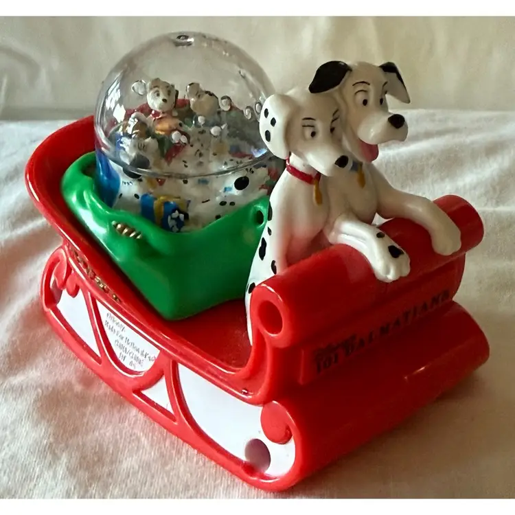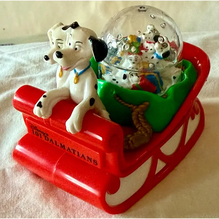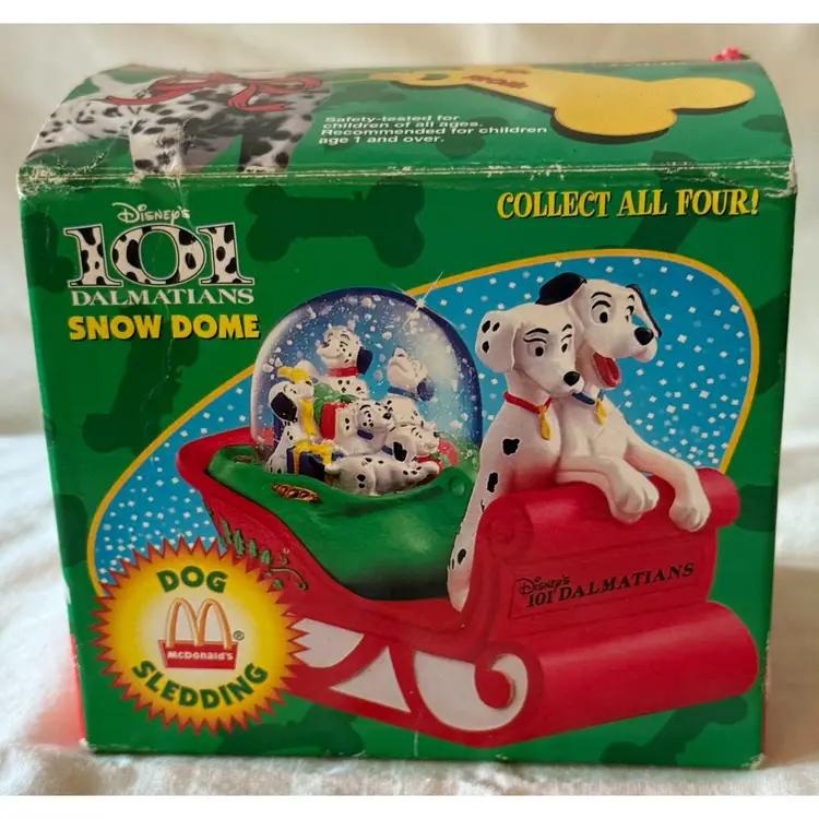 Vintage 1996 McDonald's Disney 101 Dalmatians Dog Sledding Snow Dome Snow Globe In original box Glad to answer any questions