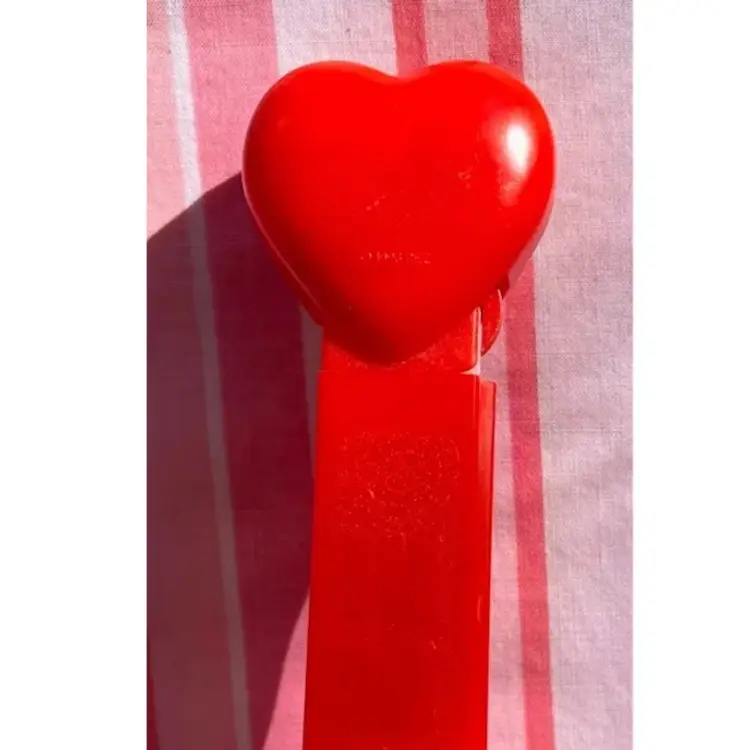 True vintage, dated 1996 on the back, heart PEZ dispenser that reads Happy Valentine’s Day. Very good condition, few light scuffs on back. Spring top works well.