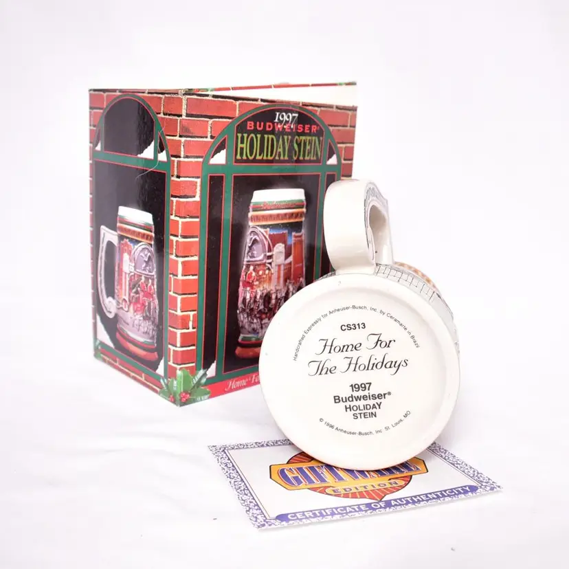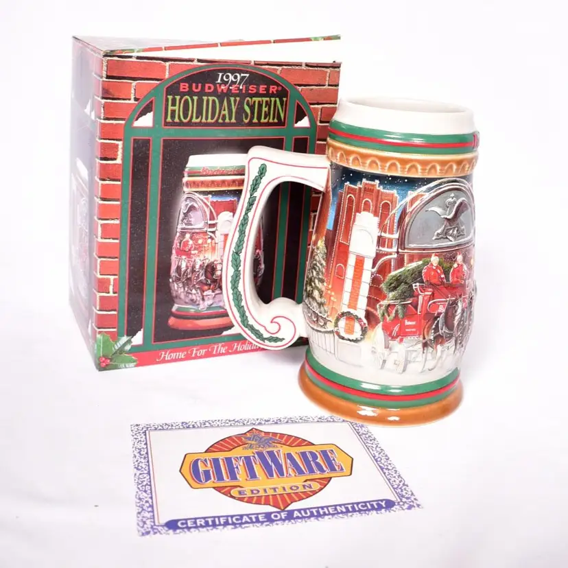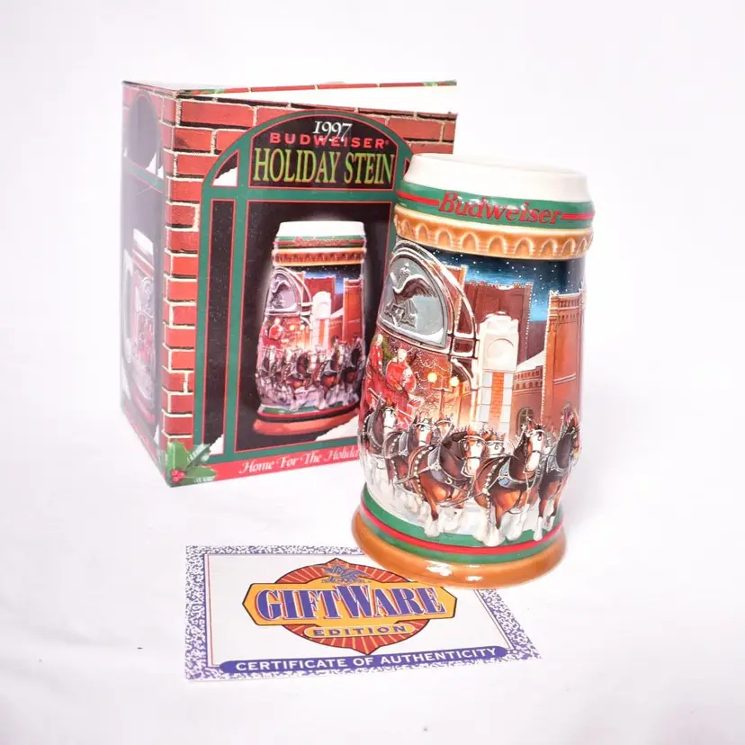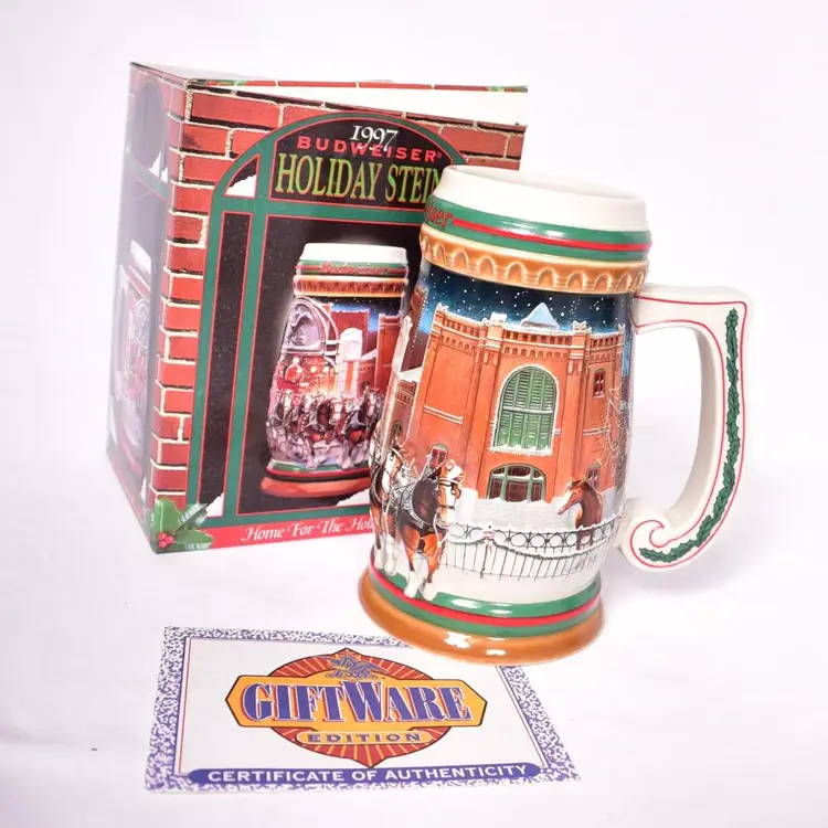 Vintage 1997 Budweiser Holiday Stein Home for the Holidays
