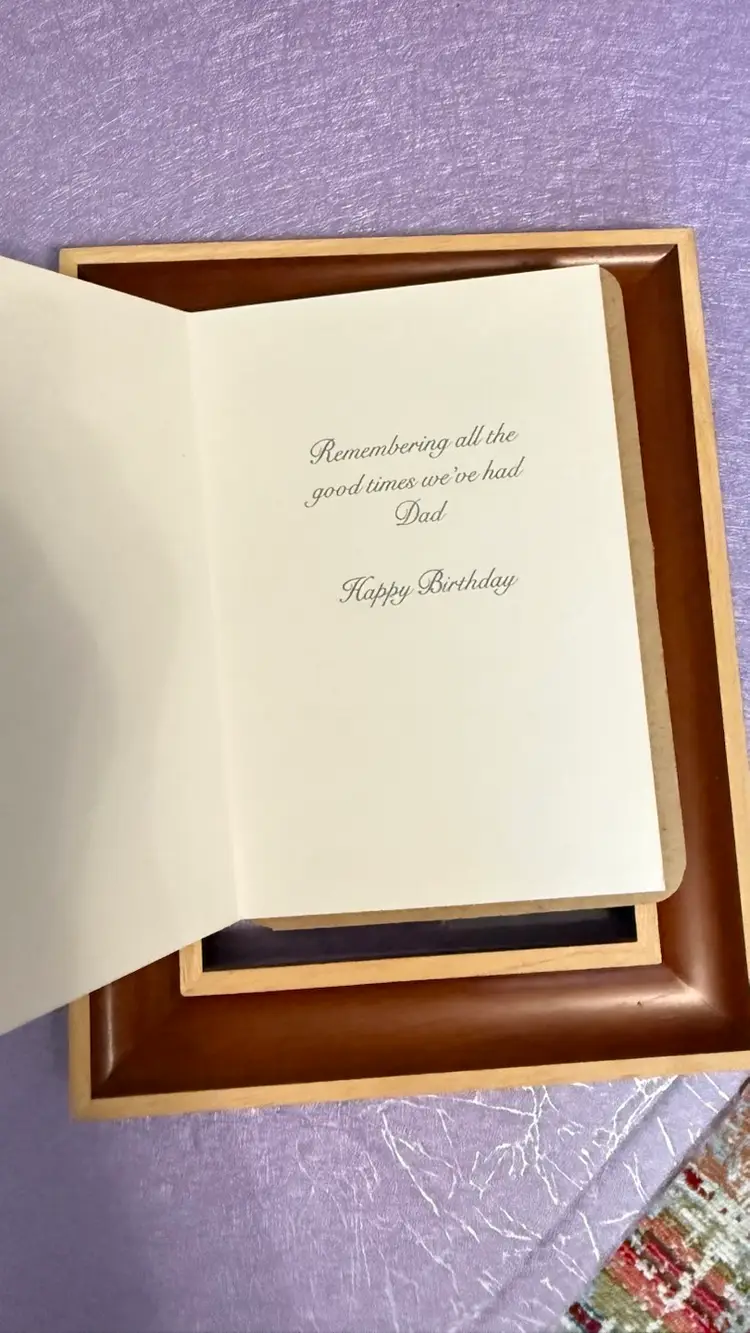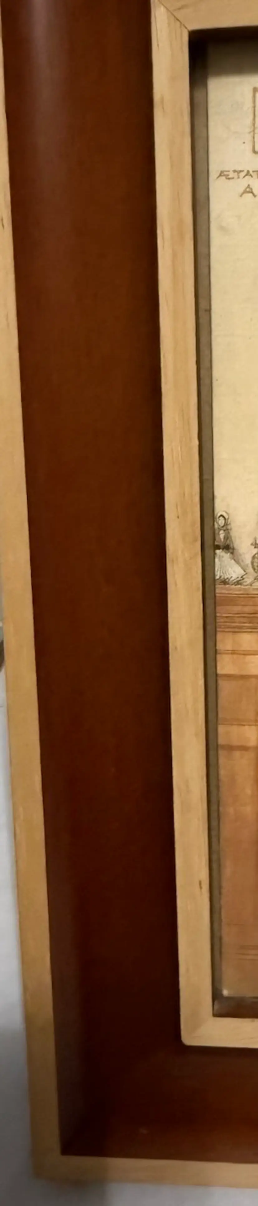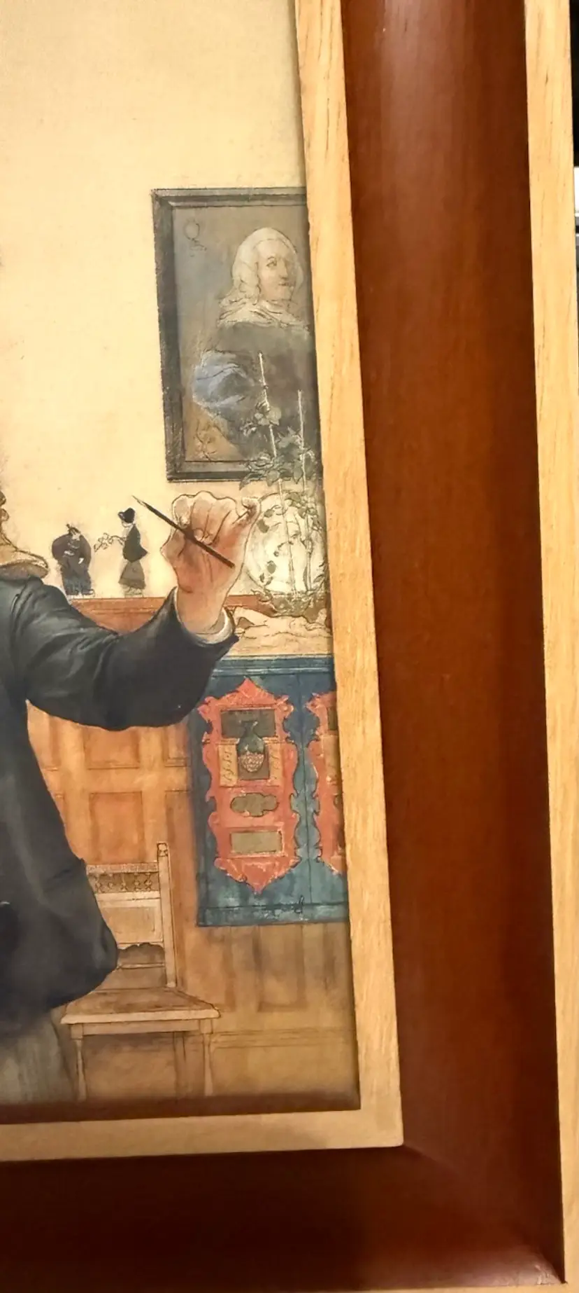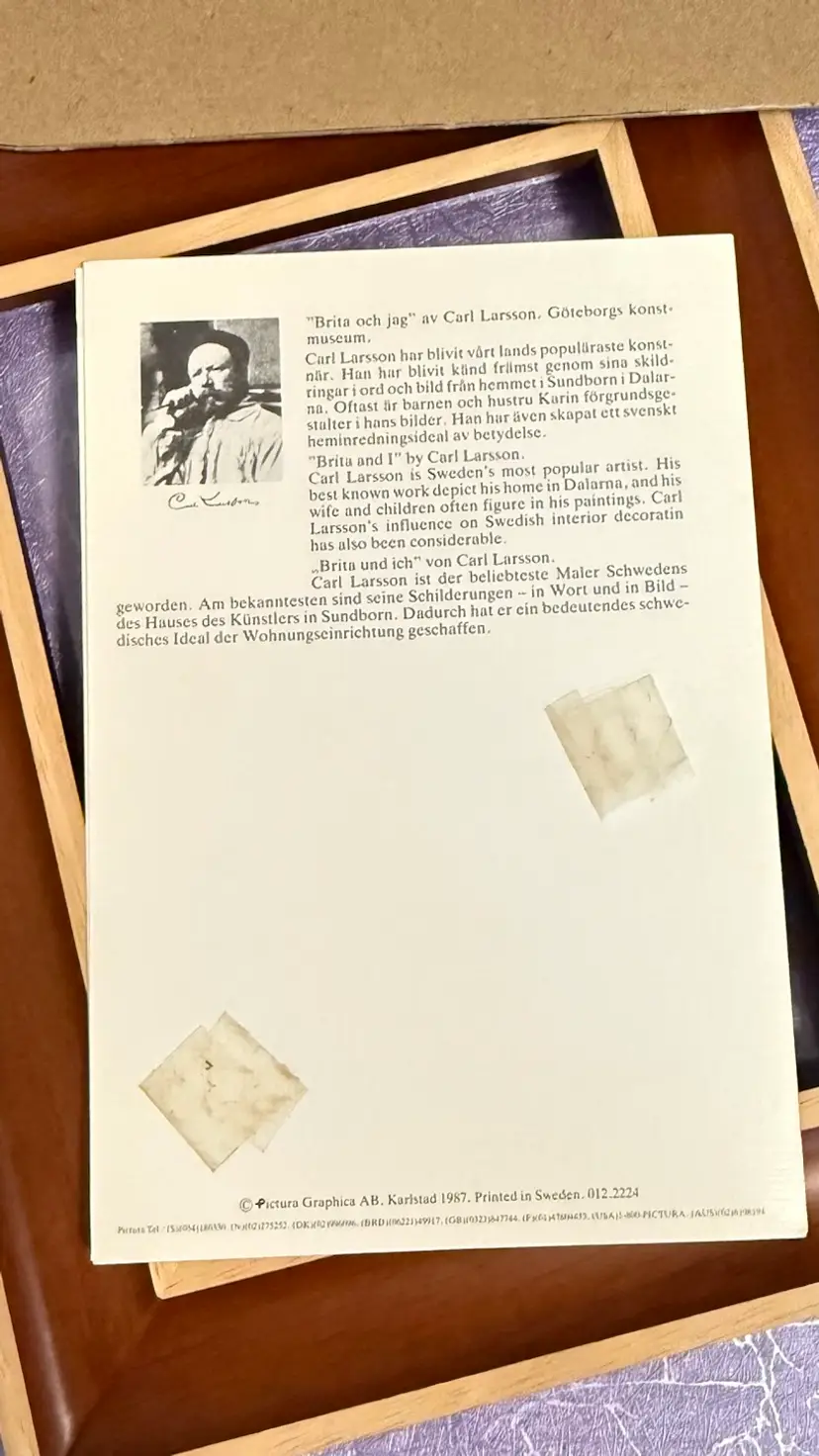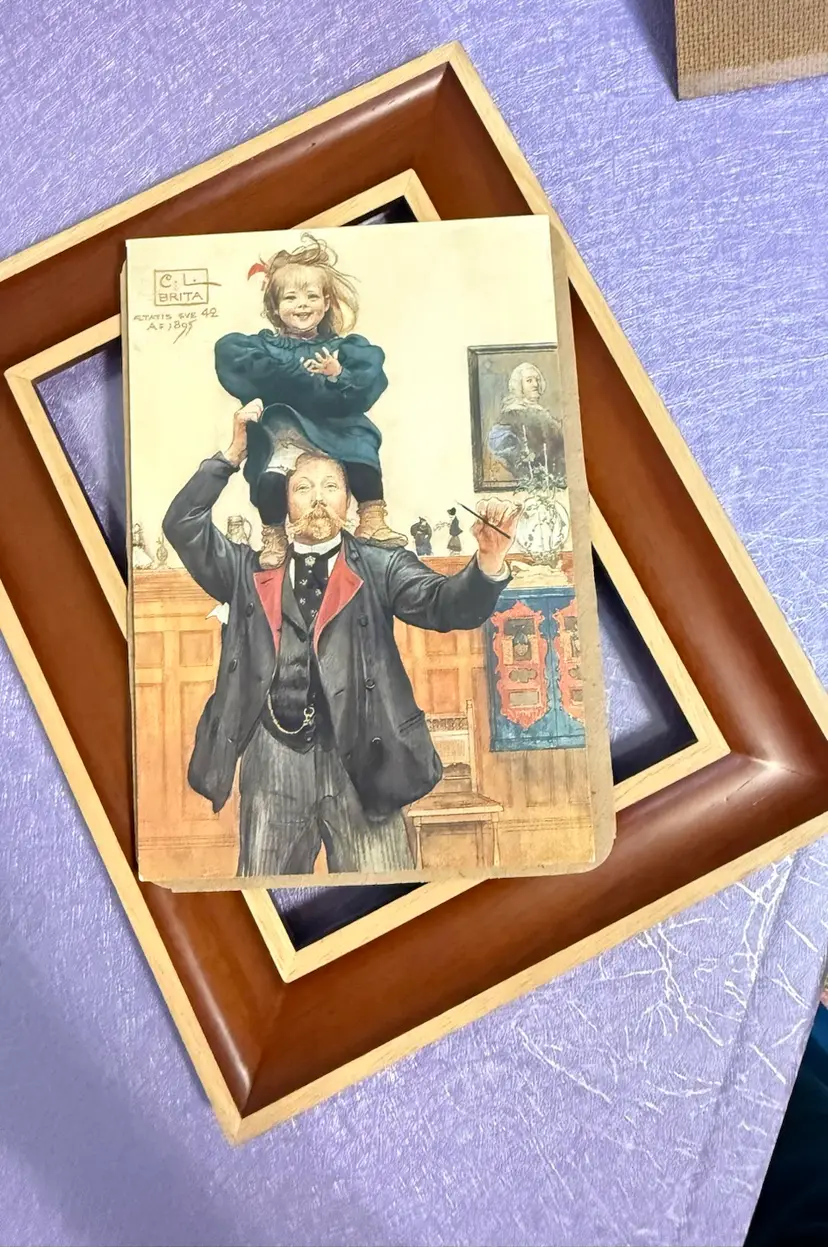 Real wood construction a common characteristic of HB Group frames from this era. A dual-tone design, warm cherry-toned wood grain inner section with a lighter, natural wood outer section, providing a timeless and elegant aesthetic. Bonus happy birthday dad greeting card of a famous watercolor painting, "Brita and Me" (Swedish: Brita och jag), by Swedish artist Carl Larsson. Both are fantastic condition