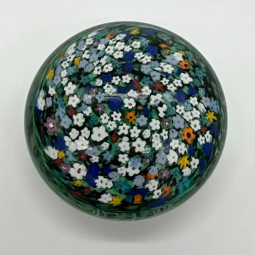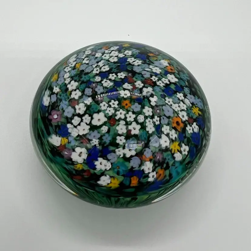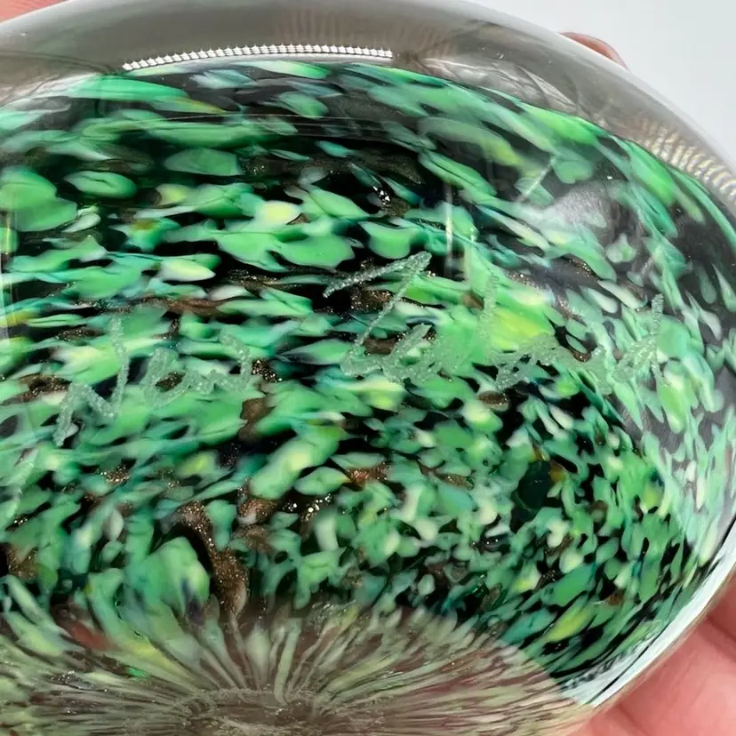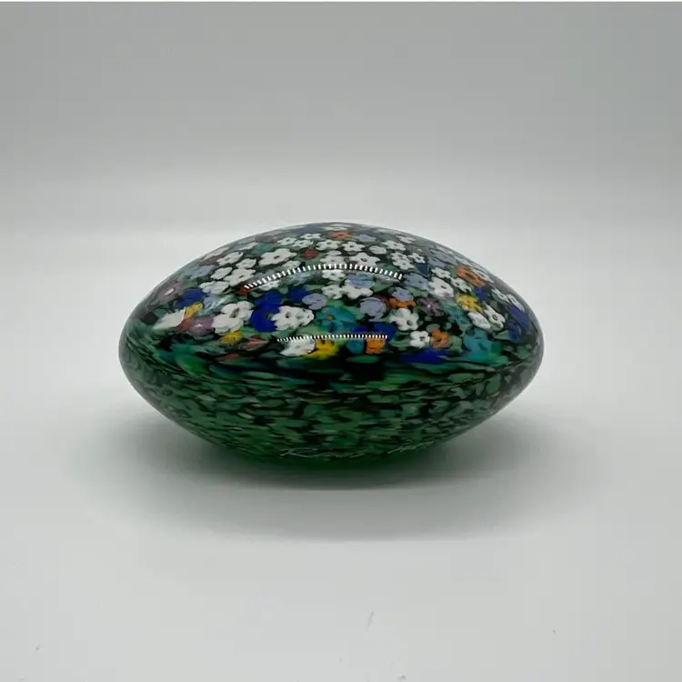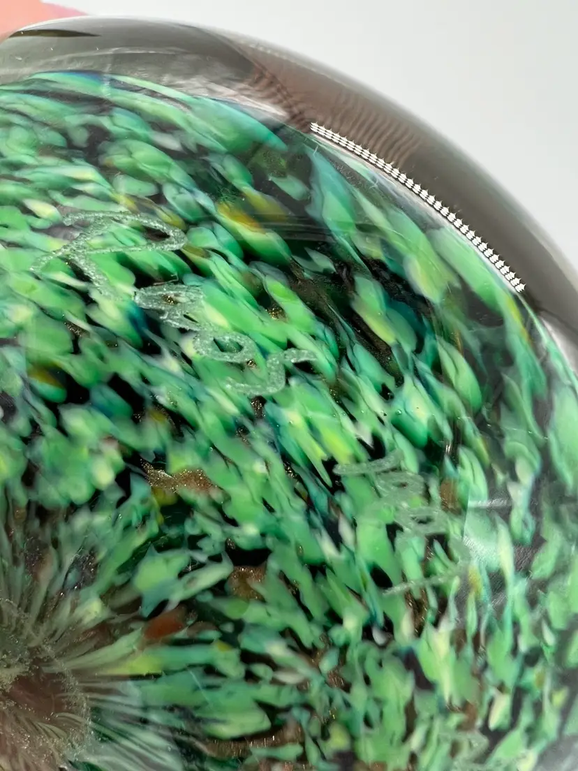 This piece is stunning! It is signed Raos 1997 New Zealand. This collection is inspired by impressionist painters. It measures about 1 1/2” tall and 3” wide.