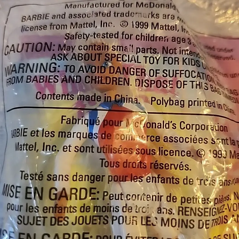 – Brand: Mattel – Restaurant: McDonald's – Year: 1999 – Custom Bundle: No – Age Level: 3-4 Years, 4-7, 8-11 Years – Country/Region of Manufacture: China – Modified Item: No – Character Family: Barbie
