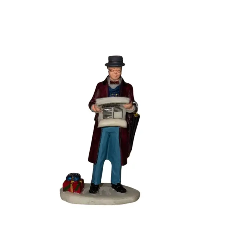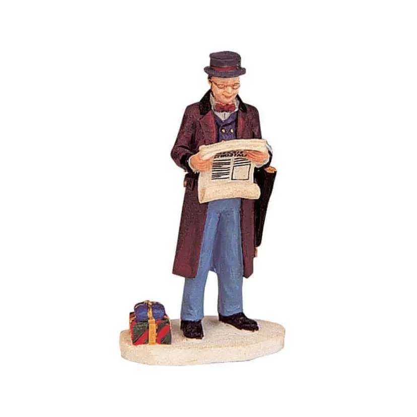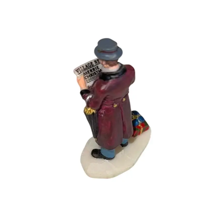 Character reading The Village News Christmas newspaper