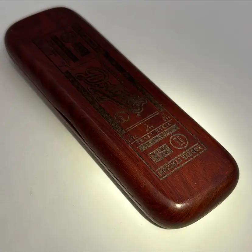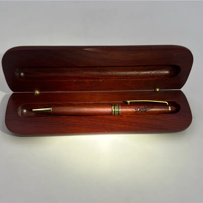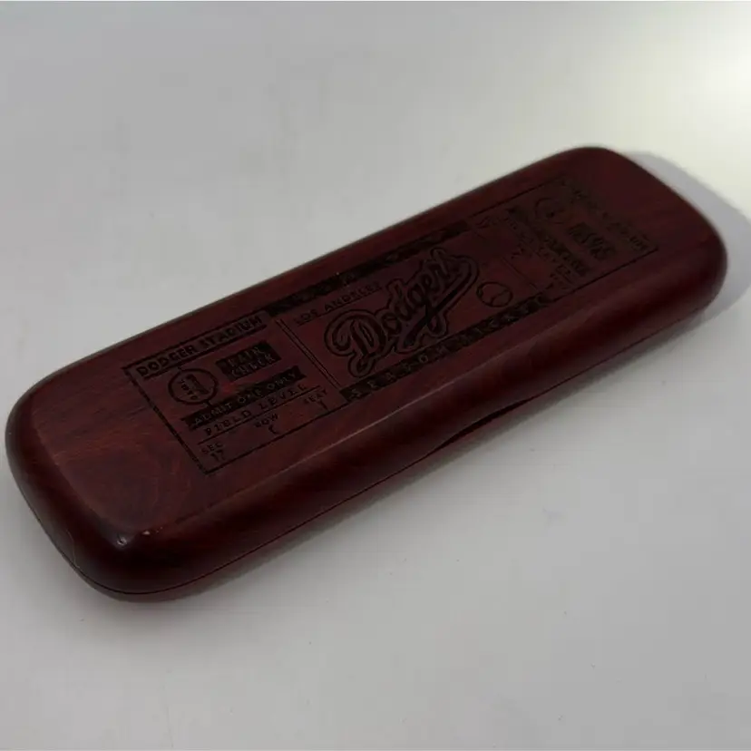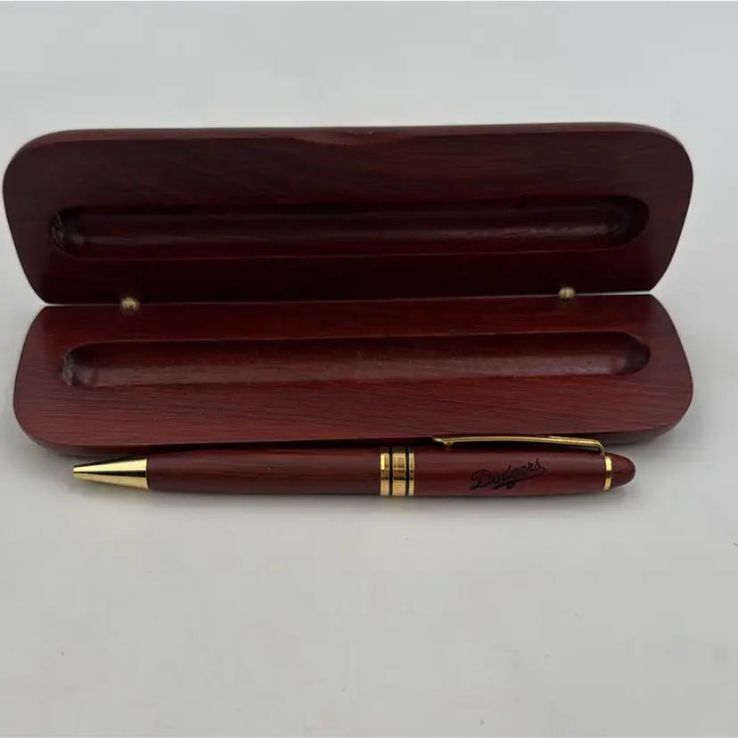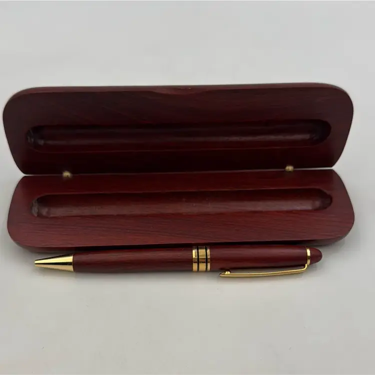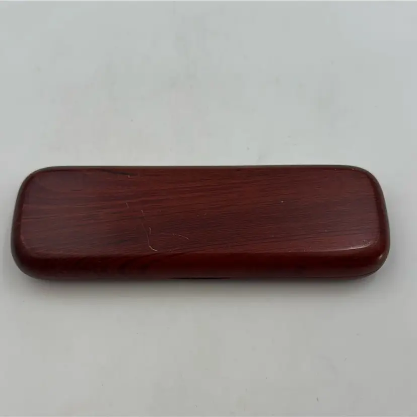 7”W 21/4”D the case has light scratching on the bottom in nice condition. The pin does need ink other than that. It’s in wonderful condition.