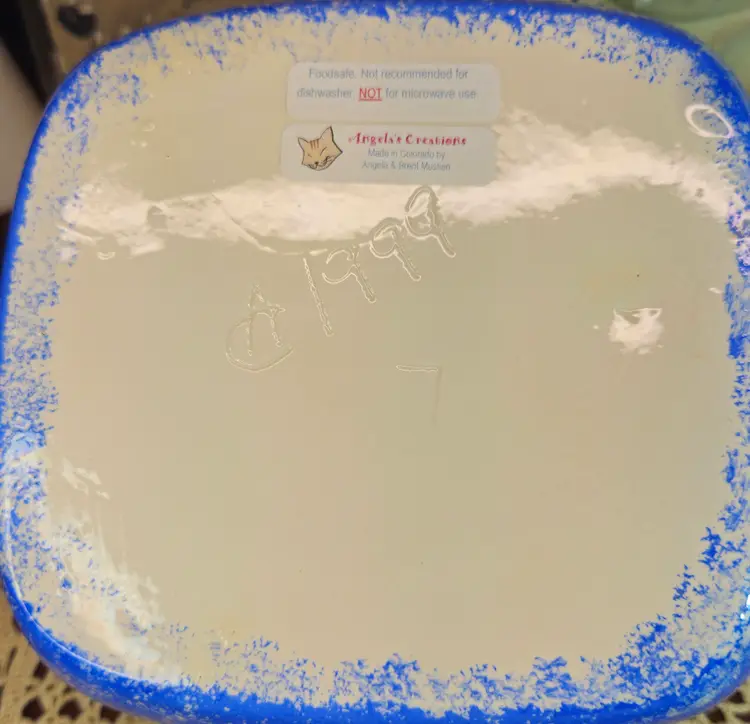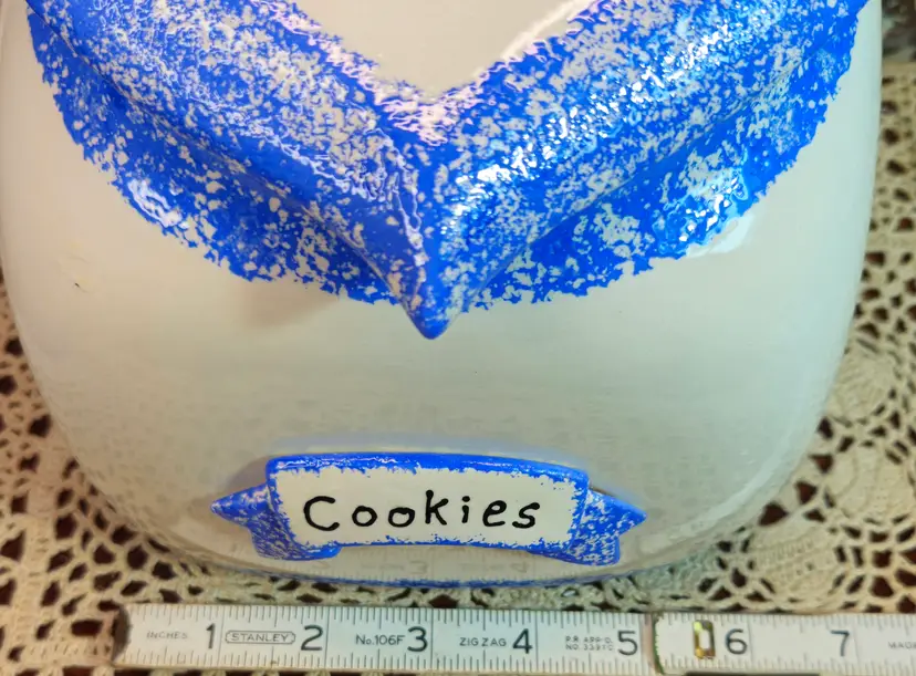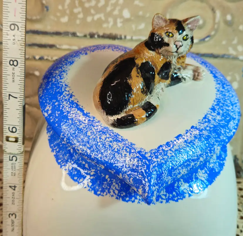 This adorable handmade cookie jar is in excellent, new condition, with no appreciable chips, scratches or cracks. It has it's original tags from the artist and is signed and dated. Measurements are depicted in the pictures of the item or listed in the description of the item. Please review the photos, as they are part of the item description. Photos will always reveal noticeable defects, as will my description. Any white “blemishes” that are not pointed out in this section are from the lighting that I use for my photos. If you need clarification, please reach out to me.