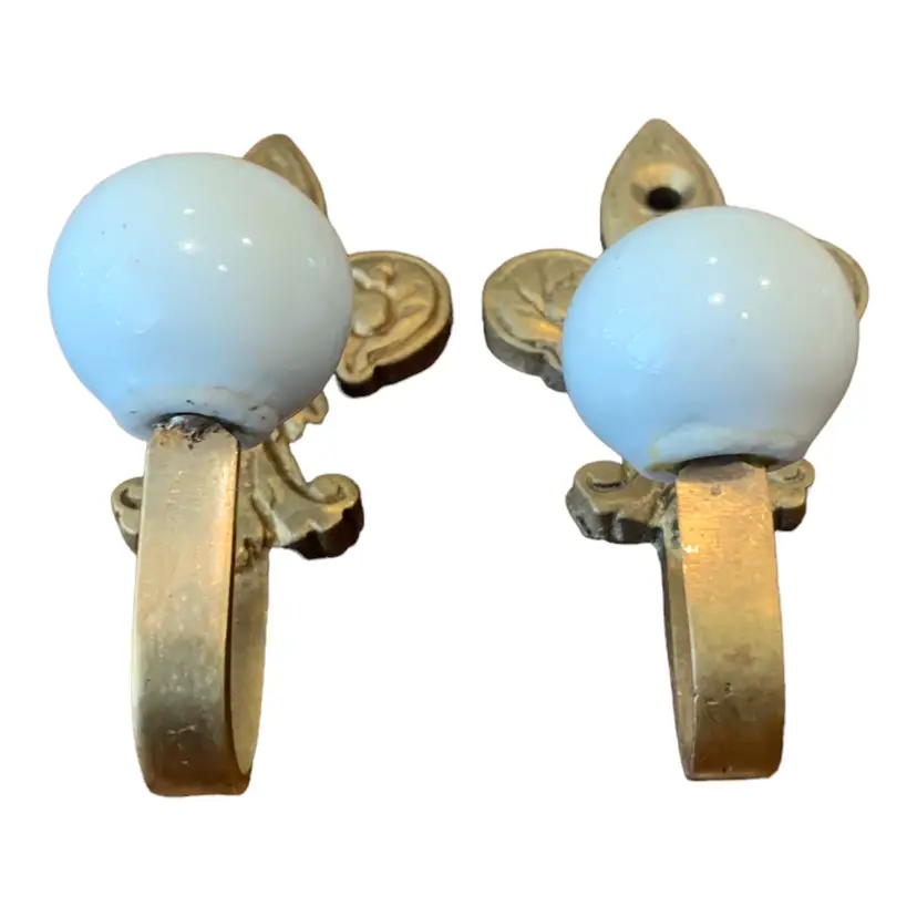 Good vintage condition with patina consistent with age and use. Please note that one of the ceramic knobs is larger than the other - these 2 hooks are not an exact match