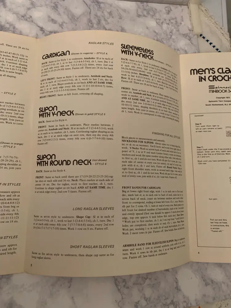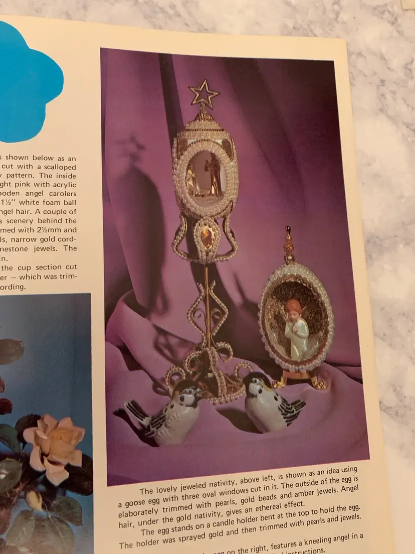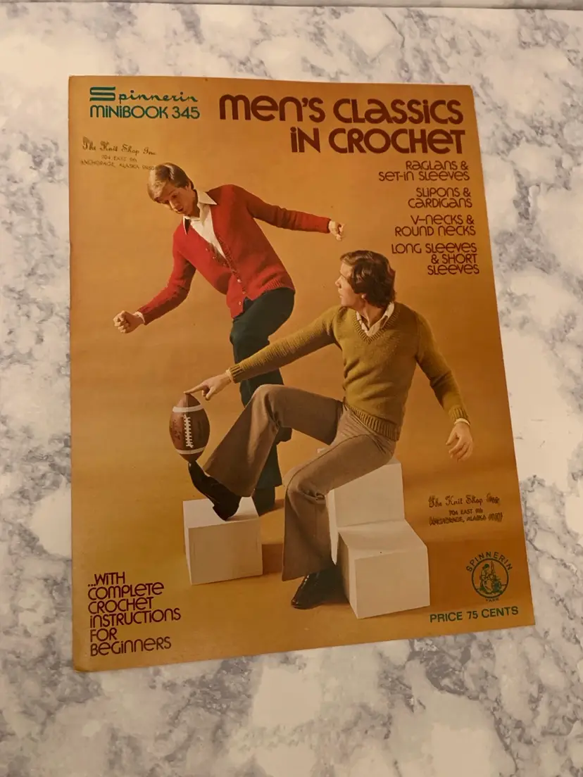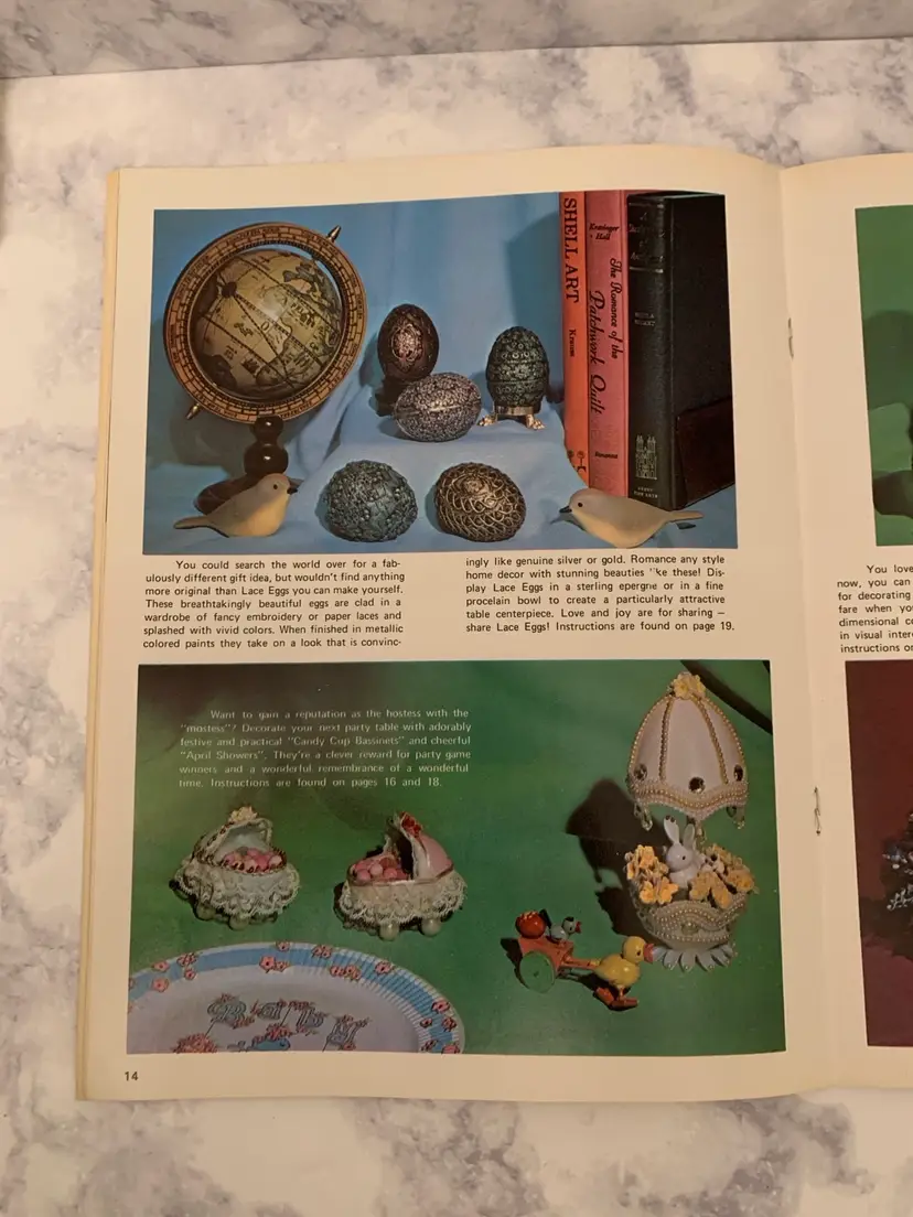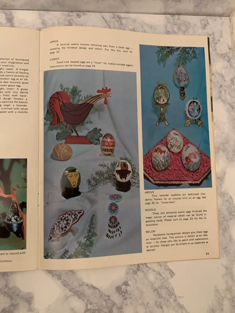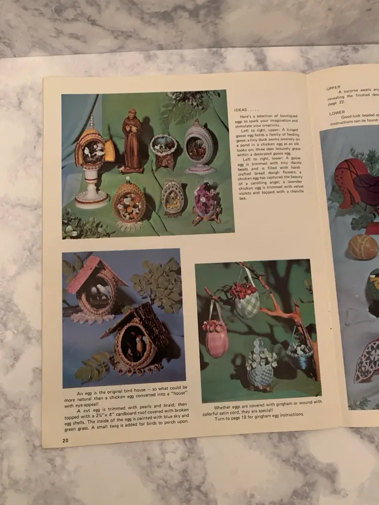Three great vintage instruction books from 1970’-1980’s. Crochet a far out outfit for your favorite guy- crochet replicas of 1930’s clothes and linens and create exquisite different kinds of decorative eggs! All three in nice vintage condition with bending on corner of egg book. Get your crochet hooks and glue guns out to make your friends and family some great creations!